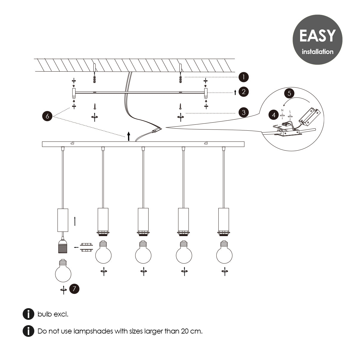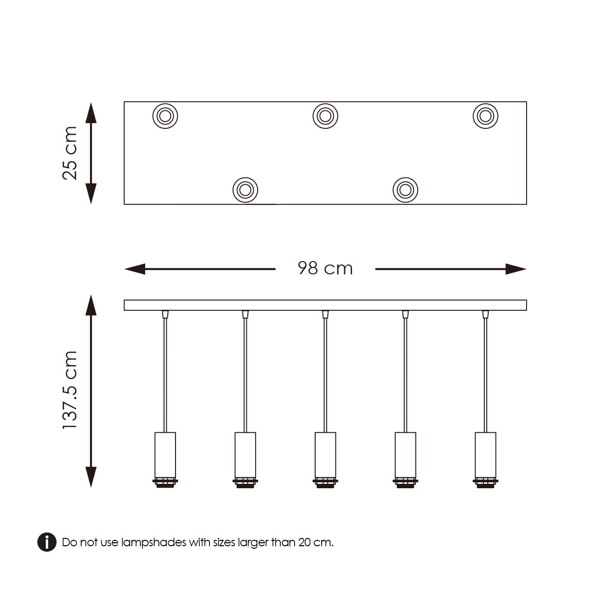 - Pendel Xxl pendant lamp zonder kap, Afmetingen: 98 cm breed x 25 cm diep x 137.5cm hoog, ideaal voor lampenkappen met max. 20cm lampenkap