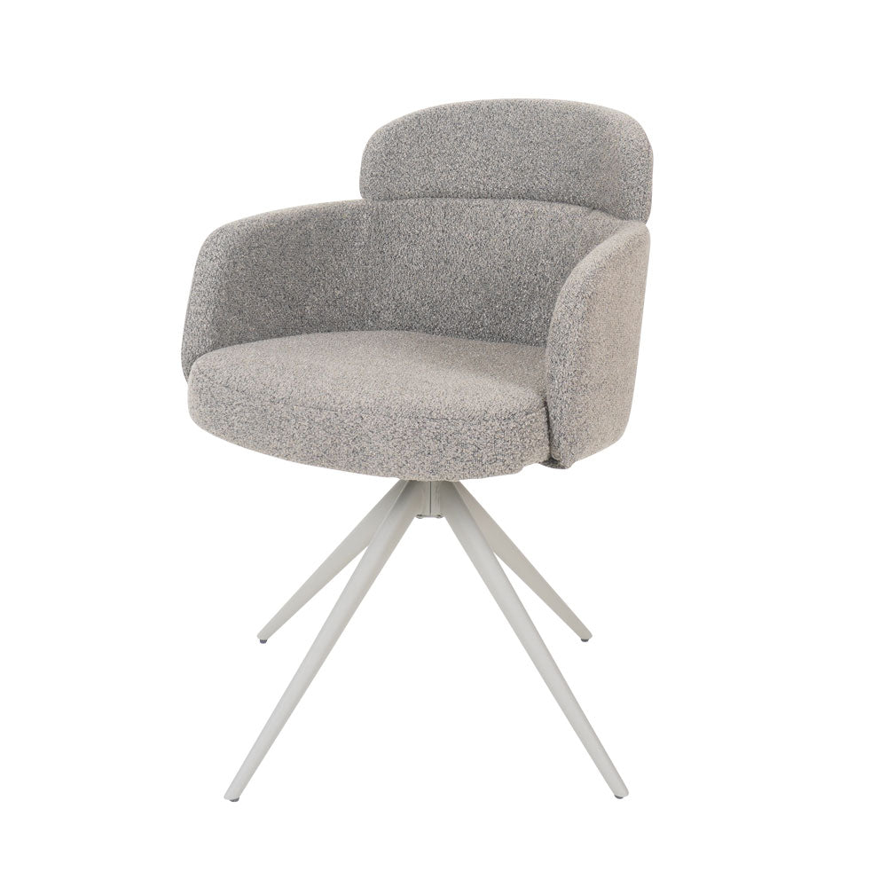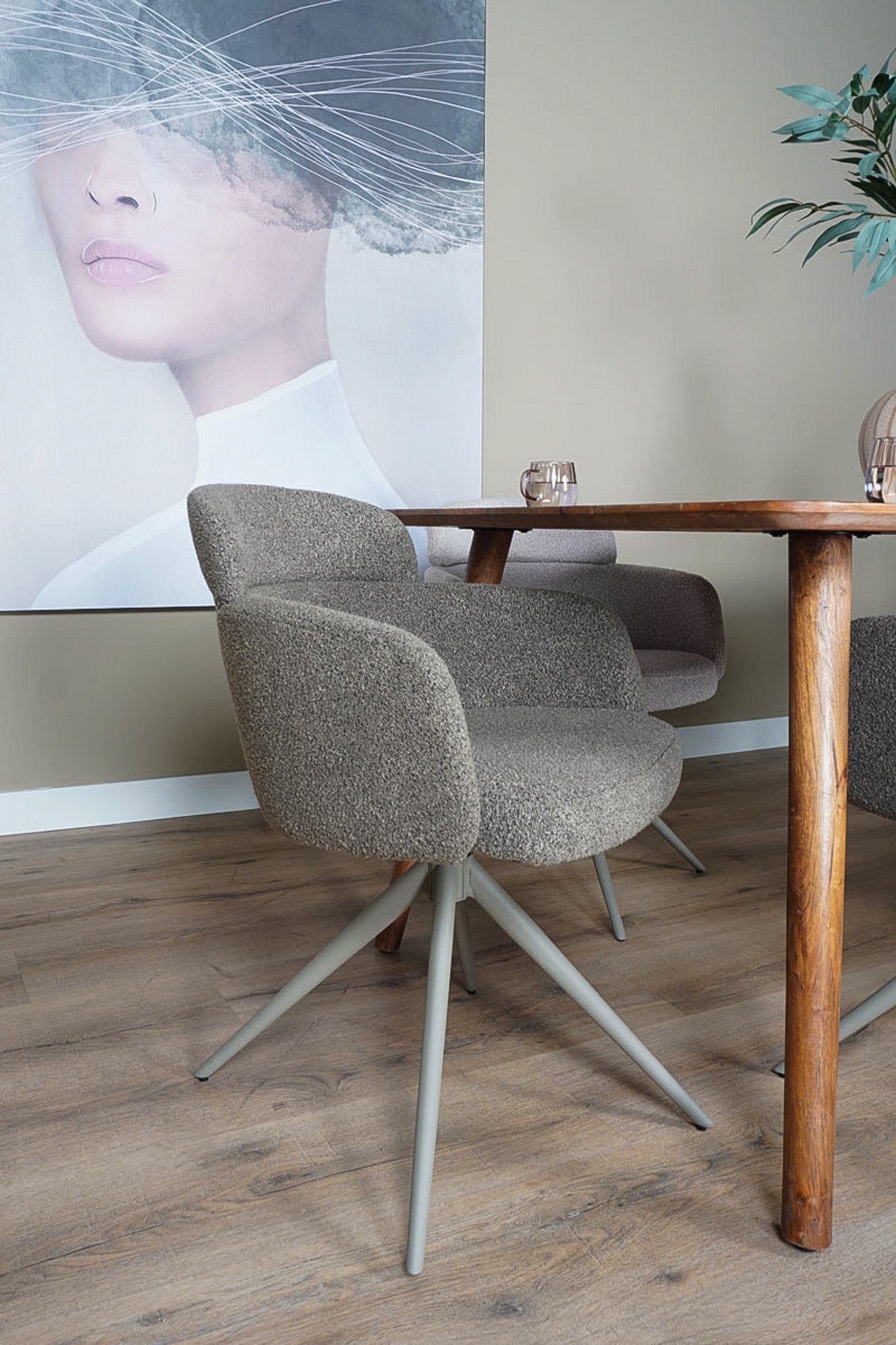 - Bekleed met een zachte bouclé stof, straalt deze stoel warmte en luxe uit