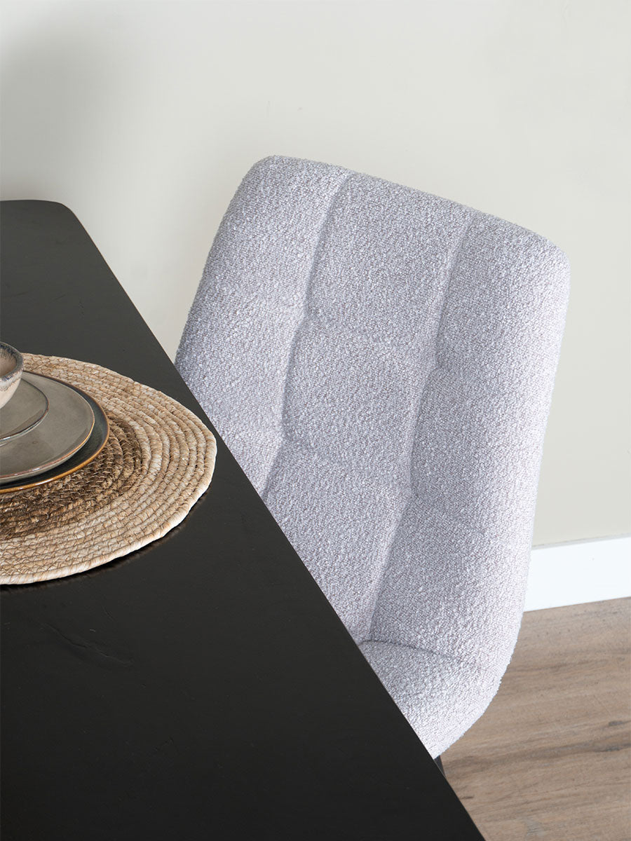 - De zachte bouclé stof, nodigt Jenna uit om te ontspannen en te genieten van elk moment aan de eettafel