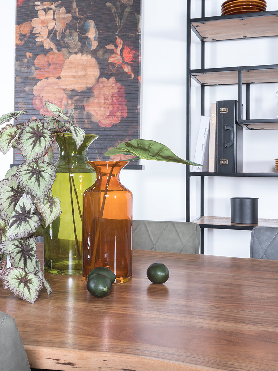 - De rand van het blad volgt de natuurlijk vorm van de boom, wat Eettafel Mats een natuurlijke en pure uitstraling geeft
