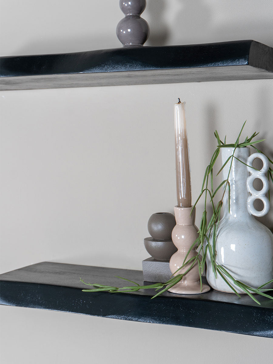 - Vanwege de zwarte kleur van het hout past de wandplank in elk interieur