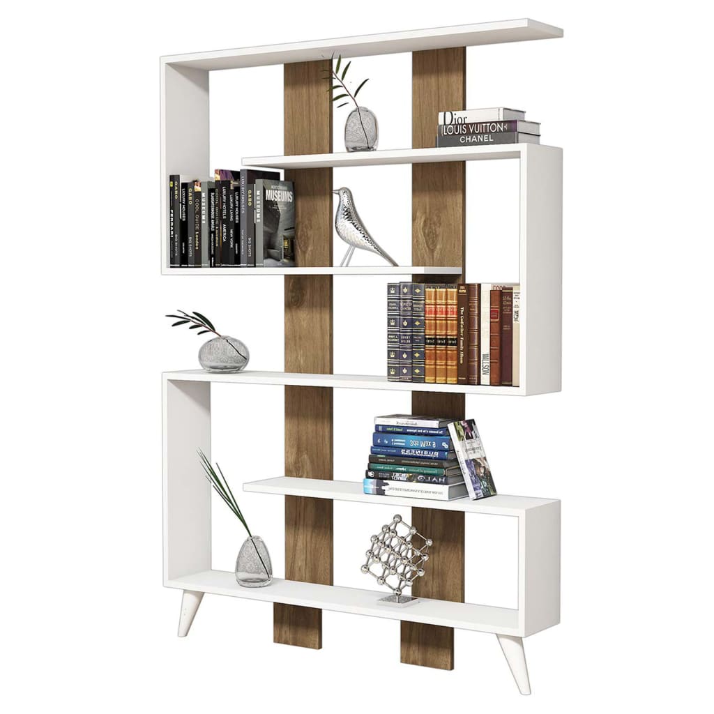 Homemania Boekenkast Jane 120x22x164 cm wit en walnootkleurig