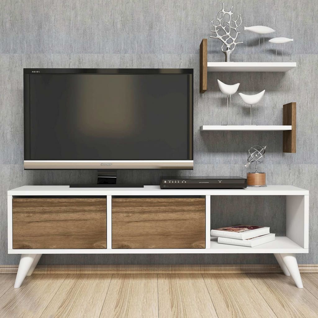 Homemania Tv-meubel Foxy 120x30x40 cm wit en walnootkleurig
