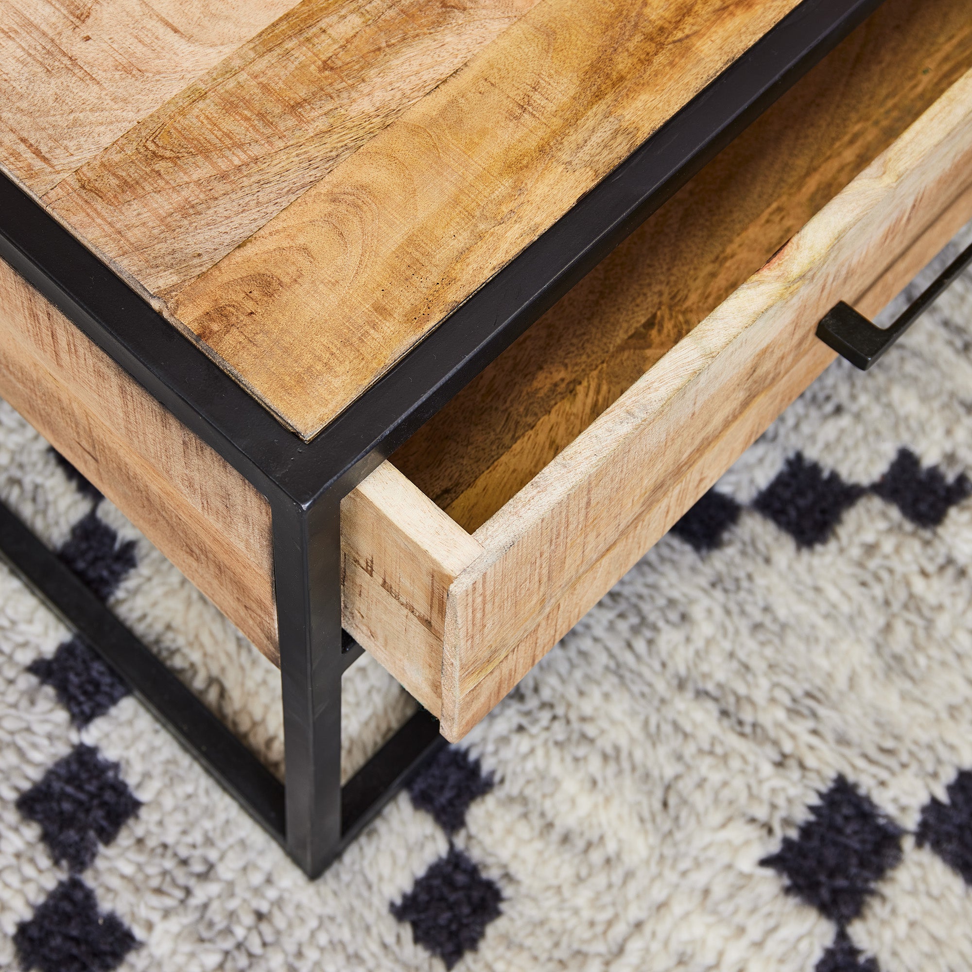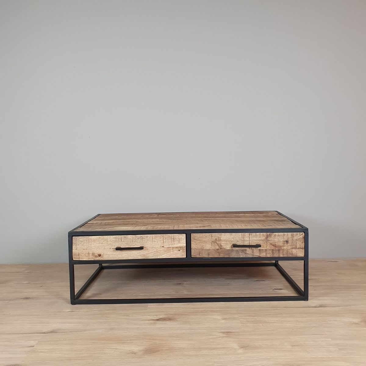 Deze trendy salontafel Sanne is gemaakt van massief mangohout. De tafel is aan de voorkant voorzien van twee lades. Salontafel Denver heeft een zwart gelakt metalen frame. Deze salontafel is onderdeel van de serie 'Sanne'