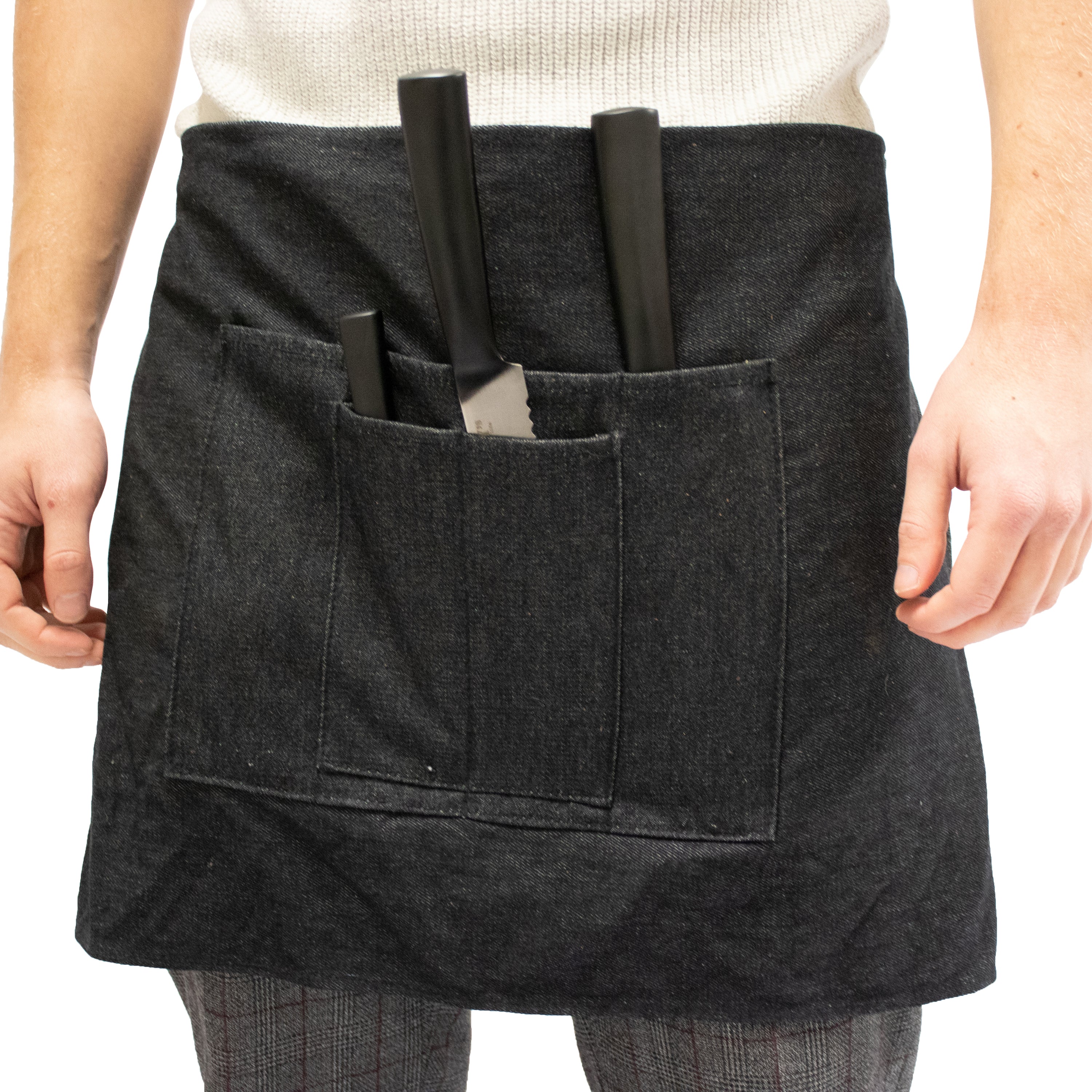 - Handige BBQ-set met drie messen, een grillmat en een denim schort
