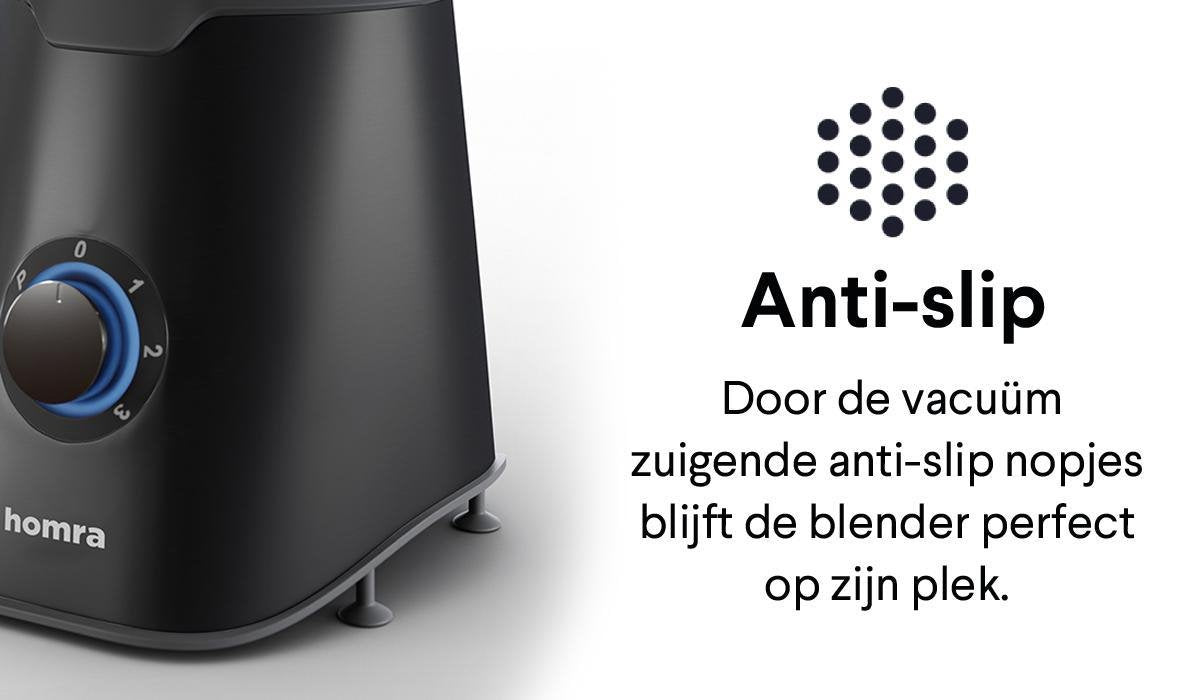 - ANTI SLIP NOPJES - Deze krachtige blender laat zich niet van de plek afstoten, vanwege de zelf vacuüm zuigende anti-slip nopjes. Hierdoor blijft het apparaat perfect op zijn plek!