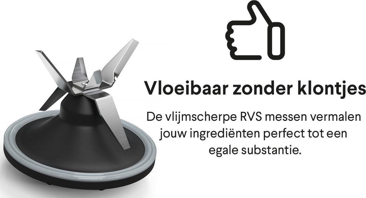 - VLOEIBAAR ZONDER KLONTJES - De vlijmscherpe RVS messen vermalen jouw ingrediënten perfect tot een egale substantie.