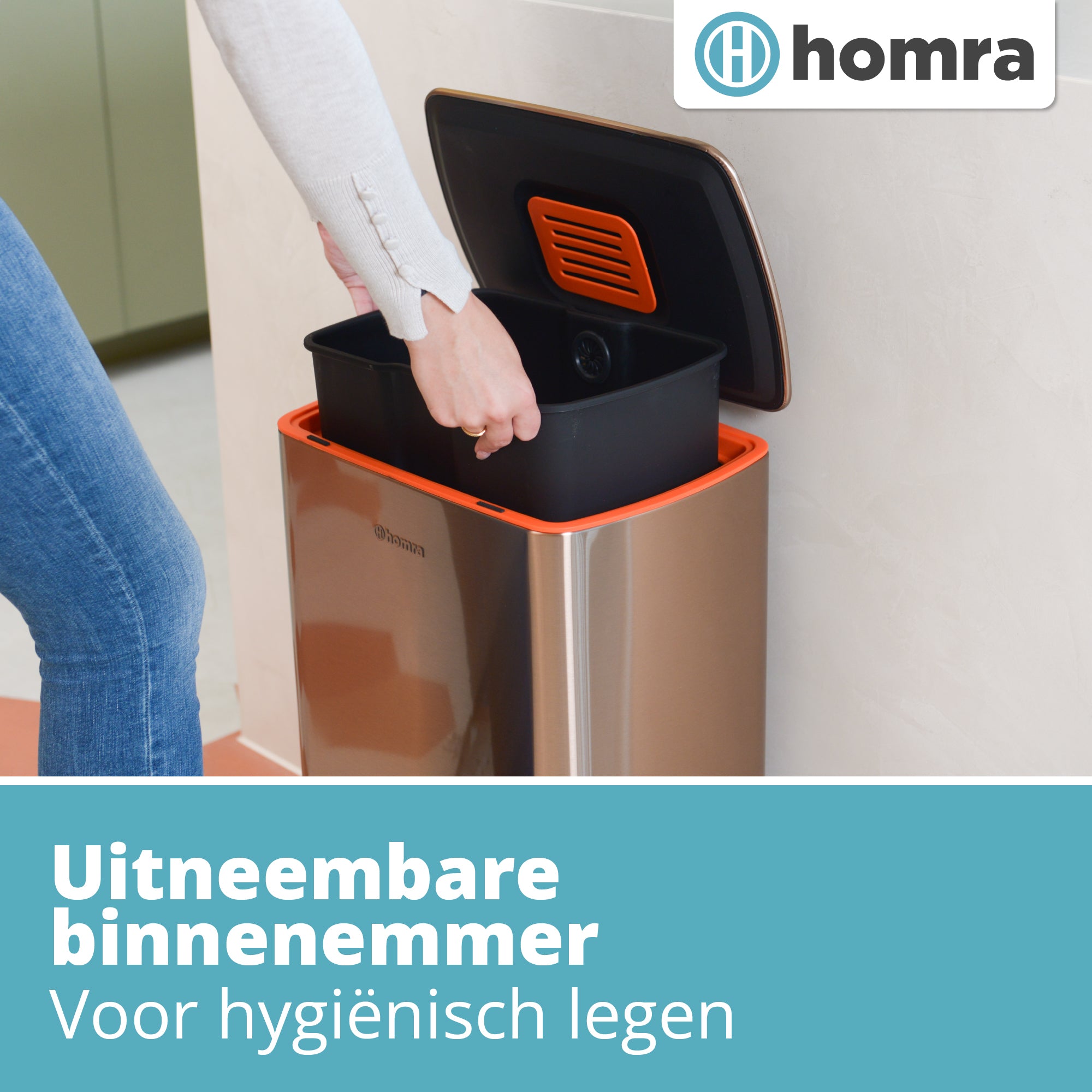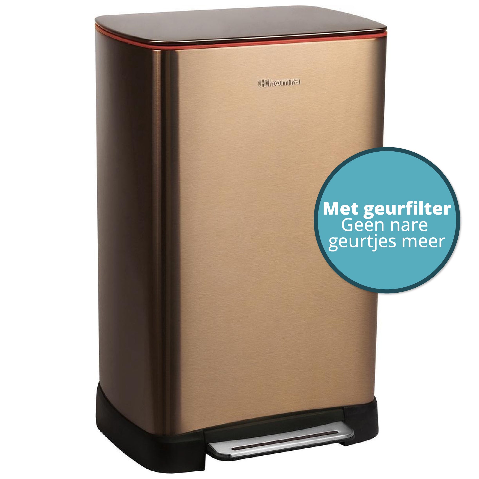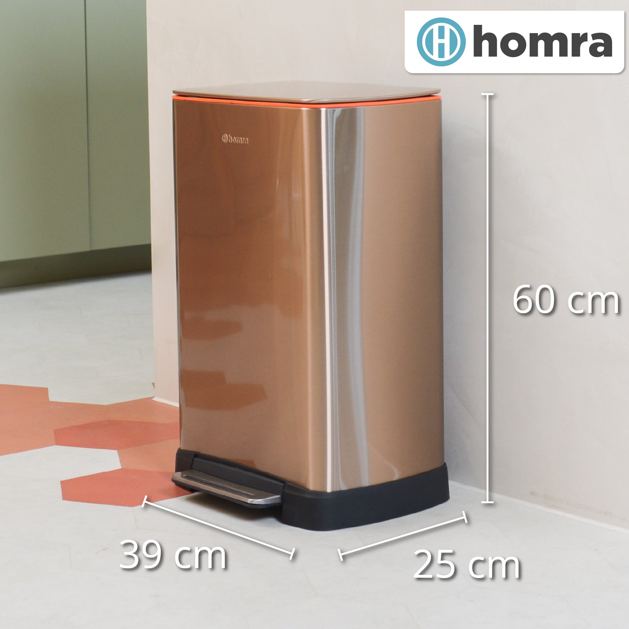 Deze koperkleurige pedaalemmer is perfect voor in de keuken, kantine, woonkamer en past perfect op elk kantoor De prullenbak heeft een prachtig design en is zeer eenvoudig in gebruik. De prullenbak is zeer hygiënisch, want hij opent door middel van een pedaal. Plaats je voet op het pedaal en de deksel opent, waardoor je afval kan weggooien zonder de prullenbak aan te raken. Super hygiënisch! Voordelen van deze koperkleurige Homra Koniq prullenbak