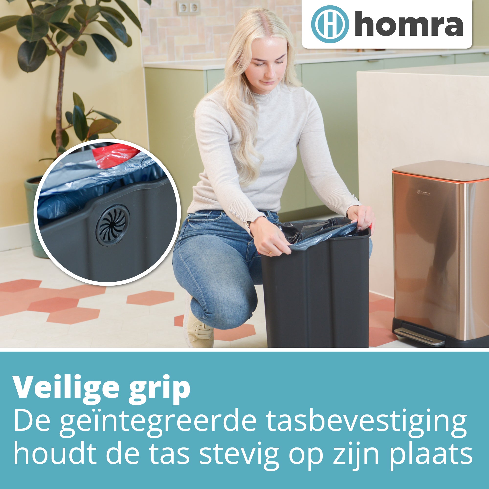 De Homra Prime Collection is ontworpen met het oog op kwaliteit, duurzaamheid, comfort en design. Met deze afvalemmer haal je een fantastisch kwaliteitsproduct in huis.