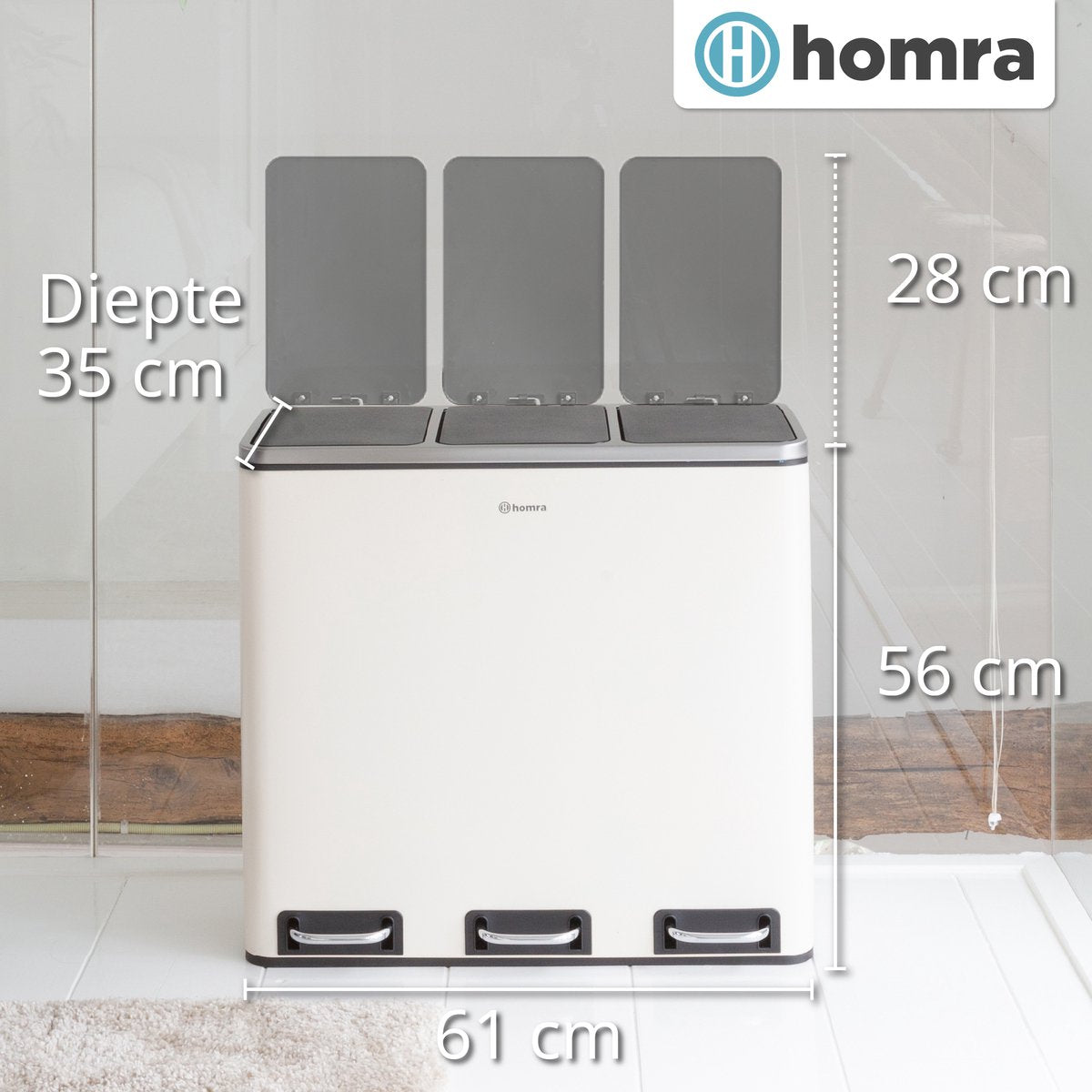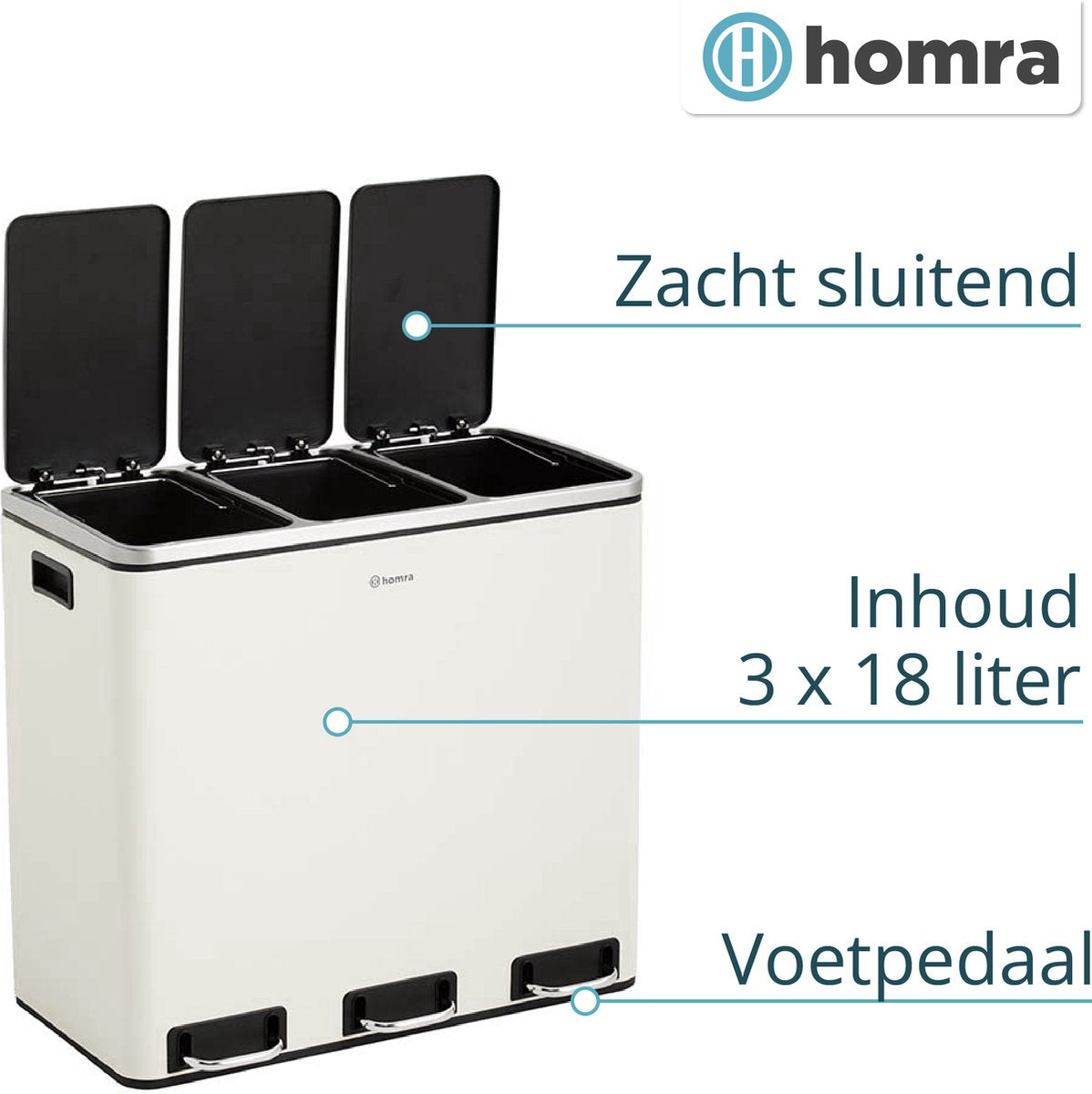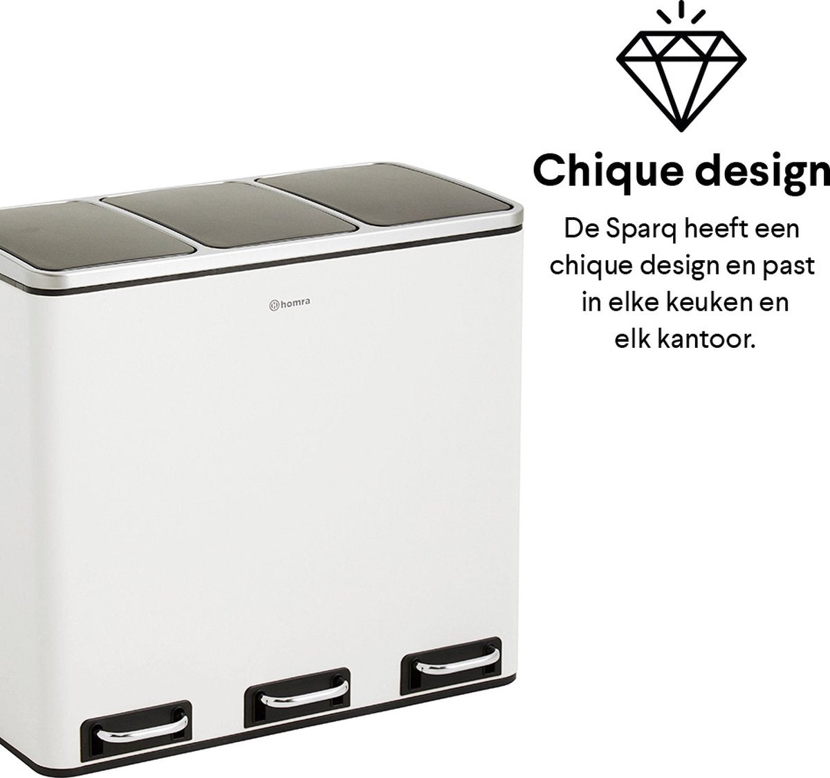 Homra SPARQ afvalscheiding Prullenbak - 3 vakken - 54L - Wit