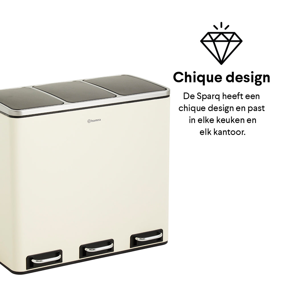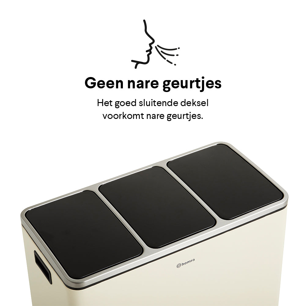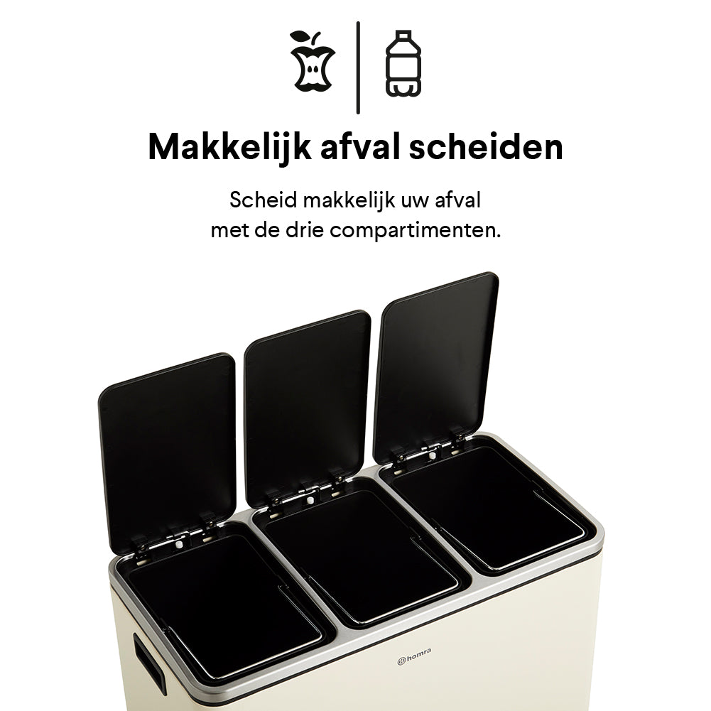 - Ideaal om afval te scheiden; heeft 3 compartimenten van 18 liter