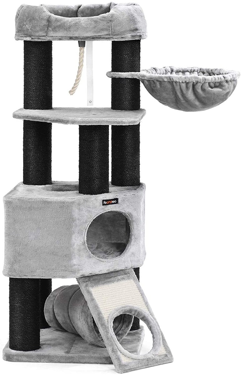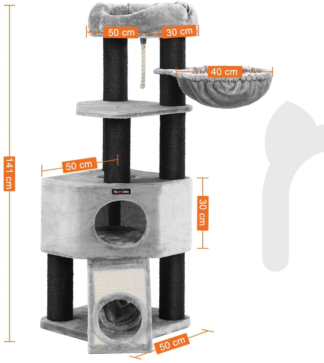 Hoppa! | Kattenboom - Krabpaal - Lichtgrijs|Zwart - Spaanplaat|Karton