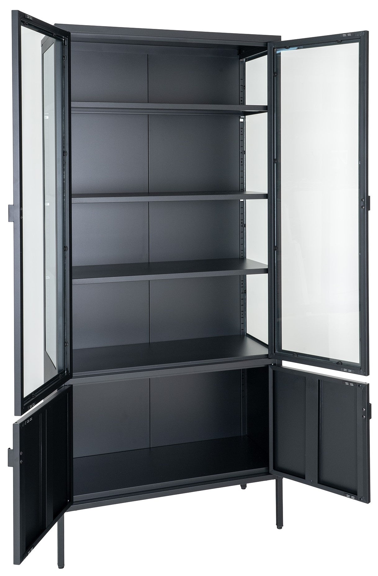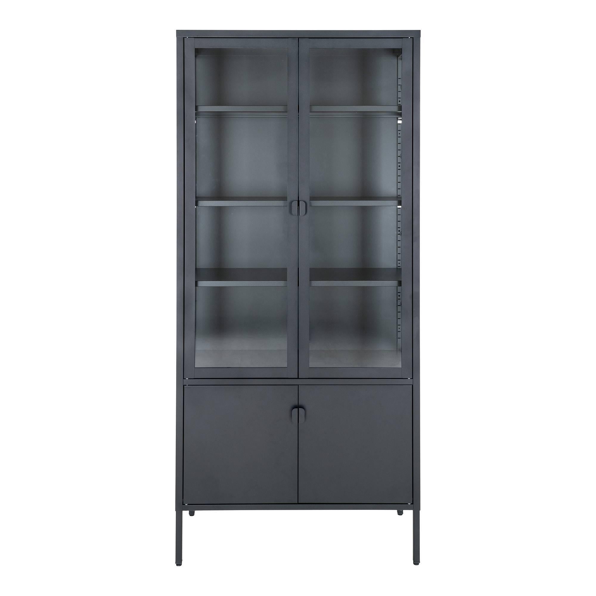 House Nordic Brisbane Zwart | Glas Vitrinekast 4-Deuren