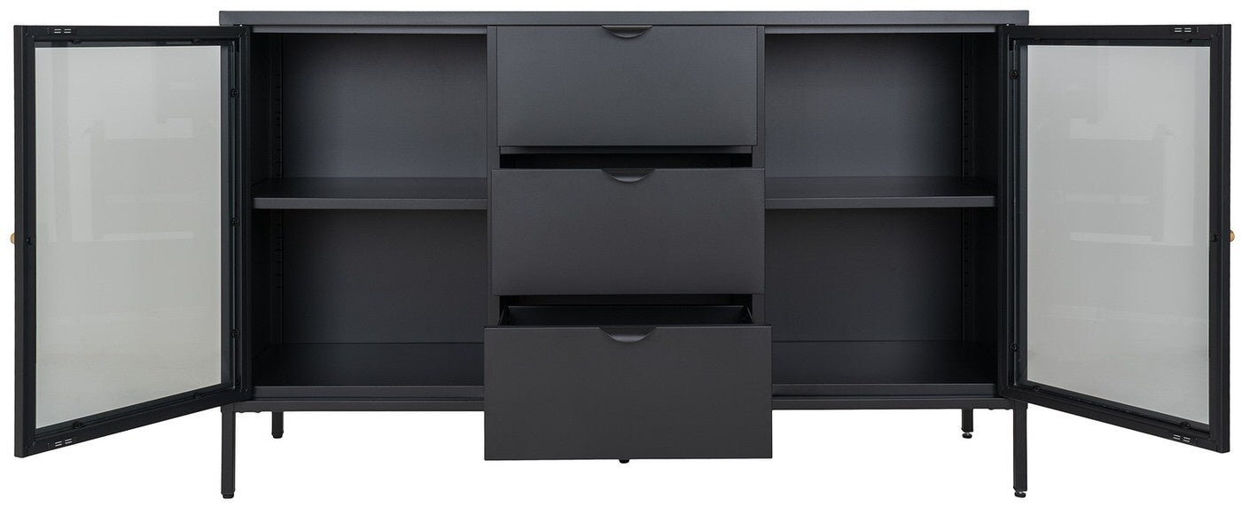 House Nordic Dalby Zwart | Glas Dressoir 2-Deuren 3-Lades