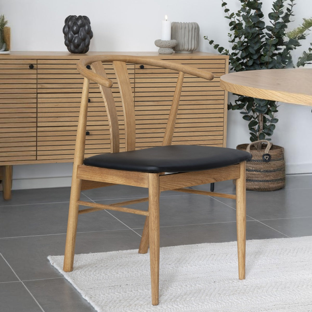 De House Nordic Eetkamerstoel Artenara in Eiken Naturel/Zwart is een stijlvolle toevoeging aan je eetkamer. De stoel combineert een elegante zwarte PU leren zitting met een stevig eikenhouten frame, wat zorgt voor een moderne en toch tijdloze uitstraling. De hoogwaardige materialen en de zorgvuldige afwerking maken deze stoel niet alleen een eyecatcher, maar ook een duurzame keuze voor dagelijks gebruik.