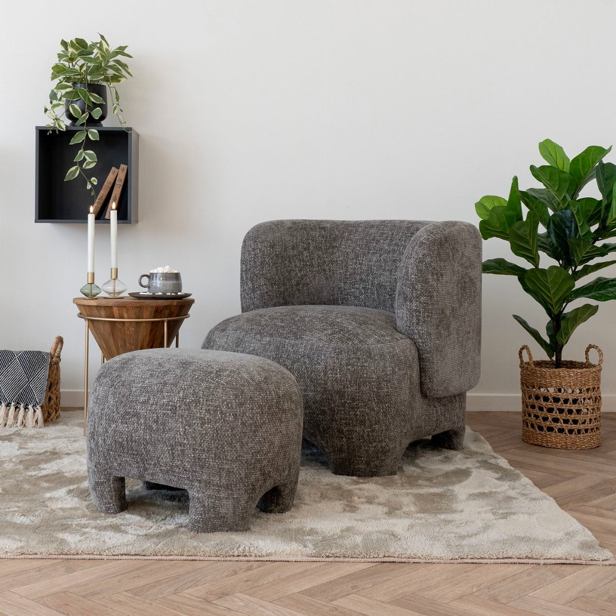 House Nordic Fauteuil Nazare met Poef Grijs