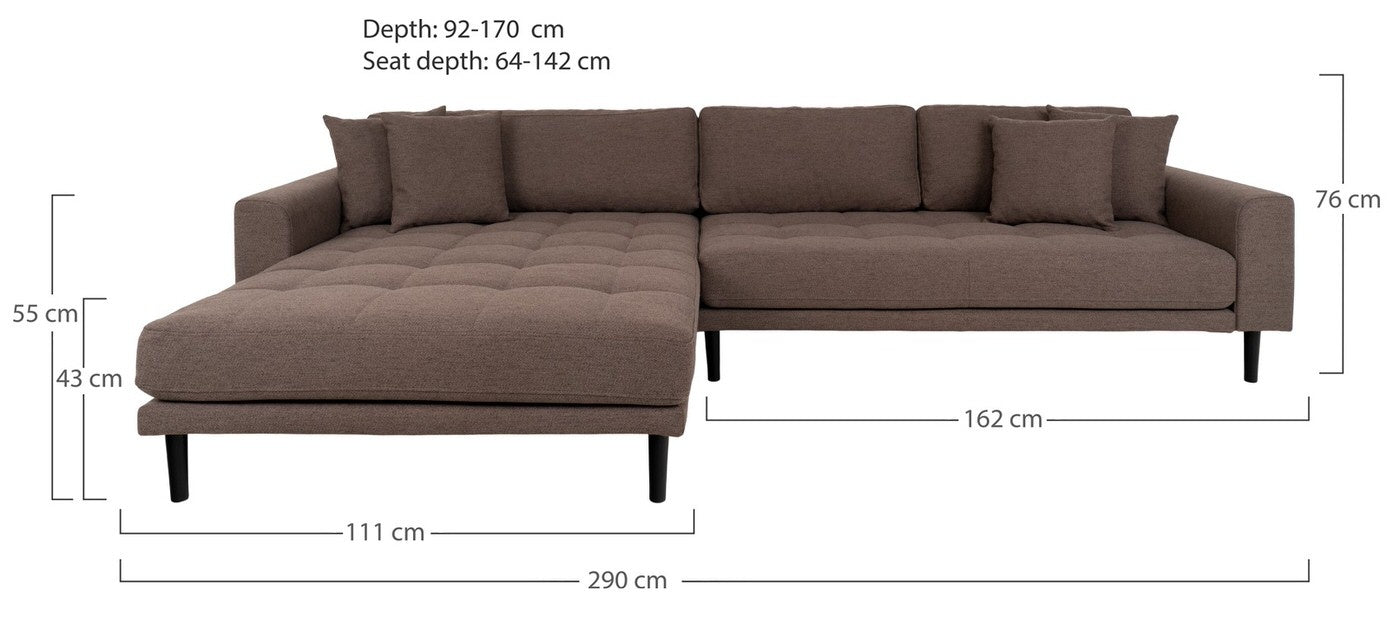 De House Nordic Hoekbank Lido Links in bruin is een prachtige toevoeging aan je woonkamer. Deze hoekbank straalt een landelijke stijl uit en is gemaakt van hoogwaardige polyester en schuimstof. De warme bruine kleur zorgt voor een gezellige en uitnodigende sfeer in je huis. Dankzij de stevige constructie en het comfortabele zitvlak is deze bank perfect voor dagelijks gebruik en biedt het een uitstekende kwaliteit en duurzaamheid.