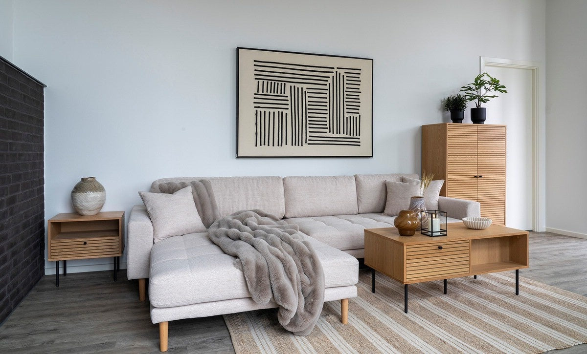 Met zijn royale afmetingen biedt deze hoekbank voldoende ruimte om heerlijk te ontspannen. Je kunt de House Nordic Hoekbank Lido Links Zand.