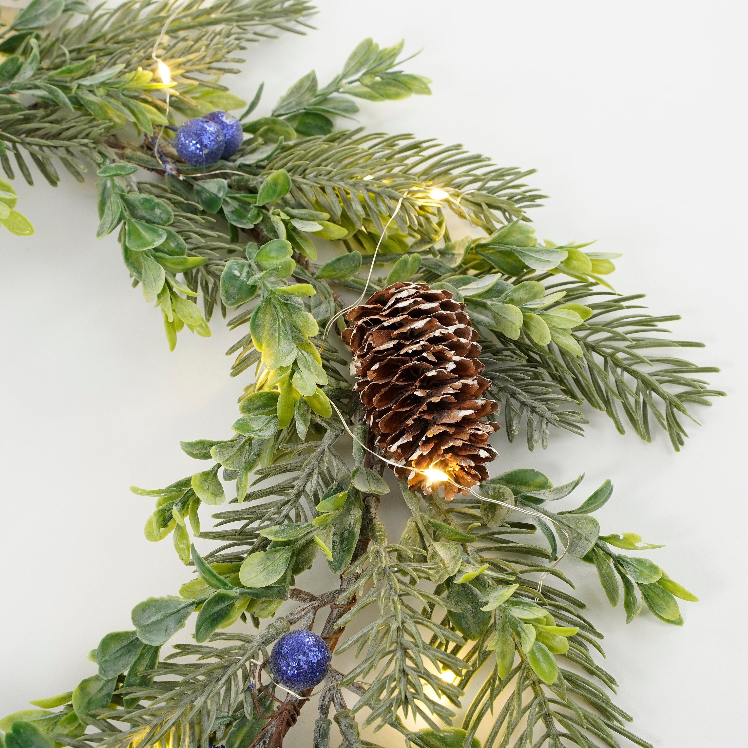 - Met prachtige, groene accenten en licht besneeuwde dennenappels
