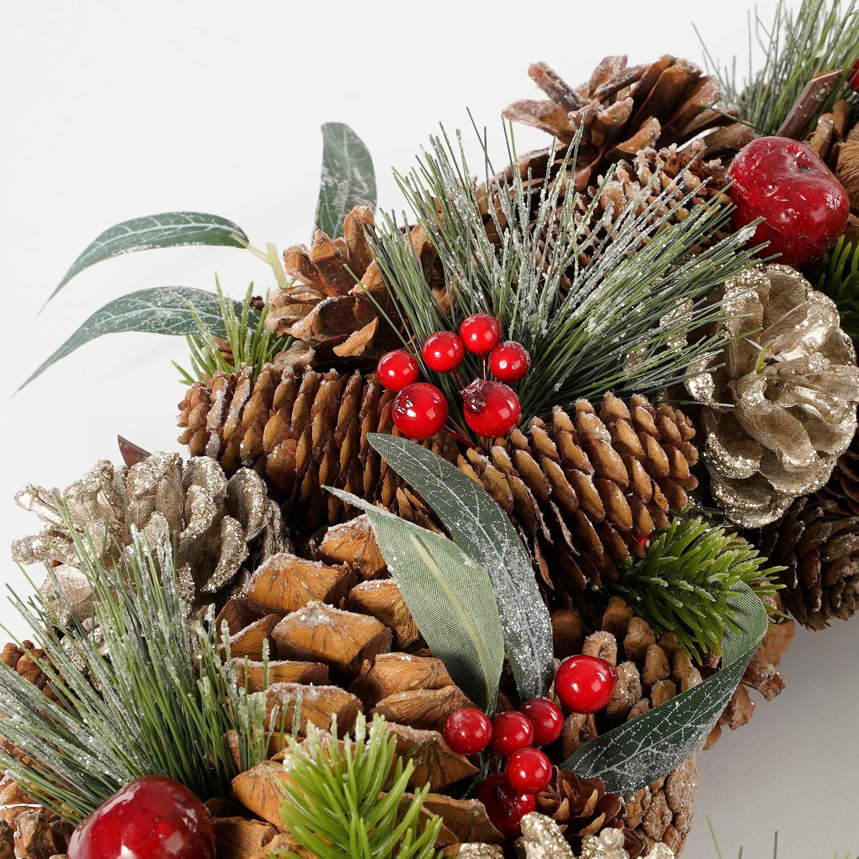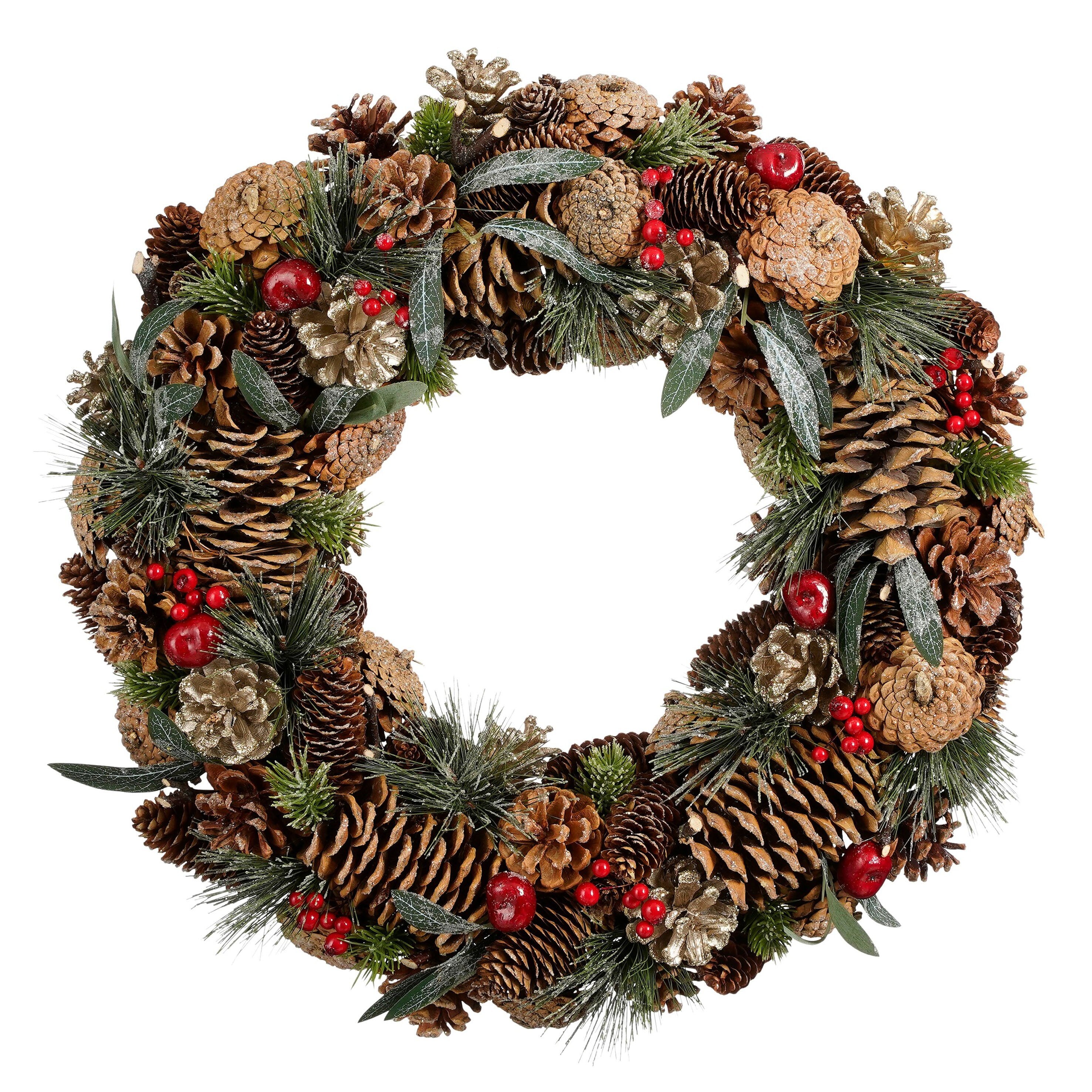 - Rijk versierde kerstkrans met dennenappels, besjes, blaadjes en takjes