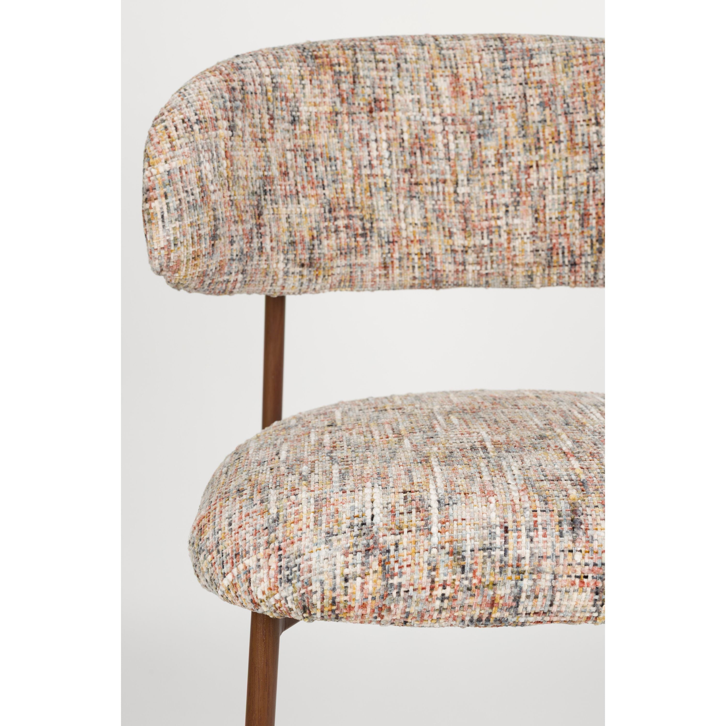 Lekker lang tafelen doe je met de Claes eetkamerstoel enbarkruk. De meubels hebben een comfortabele zit en voelen heerlijk zacht aan.Bovendien zorgen de kleurverschillen in de gemêleerde bekleding voor een speelsen tikkeltje retro effect. Het houten onderstel met diepe walnootkleur geefteen mooi contrast met de stof. Hierdoor ontstaat een look die een knipoog vormtnaar vroeger, maar toch perfect past bij de trends van nu.