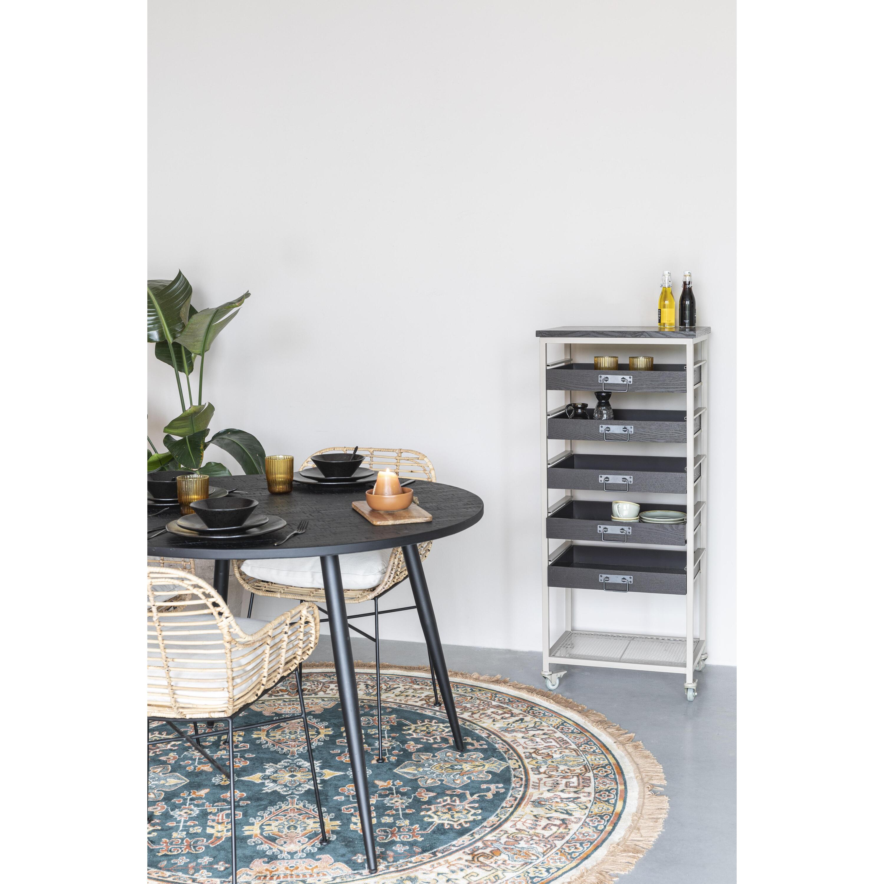 - De kast heeft handige wieltjes die je vast kunt zetten en een rek aan de onderkant.