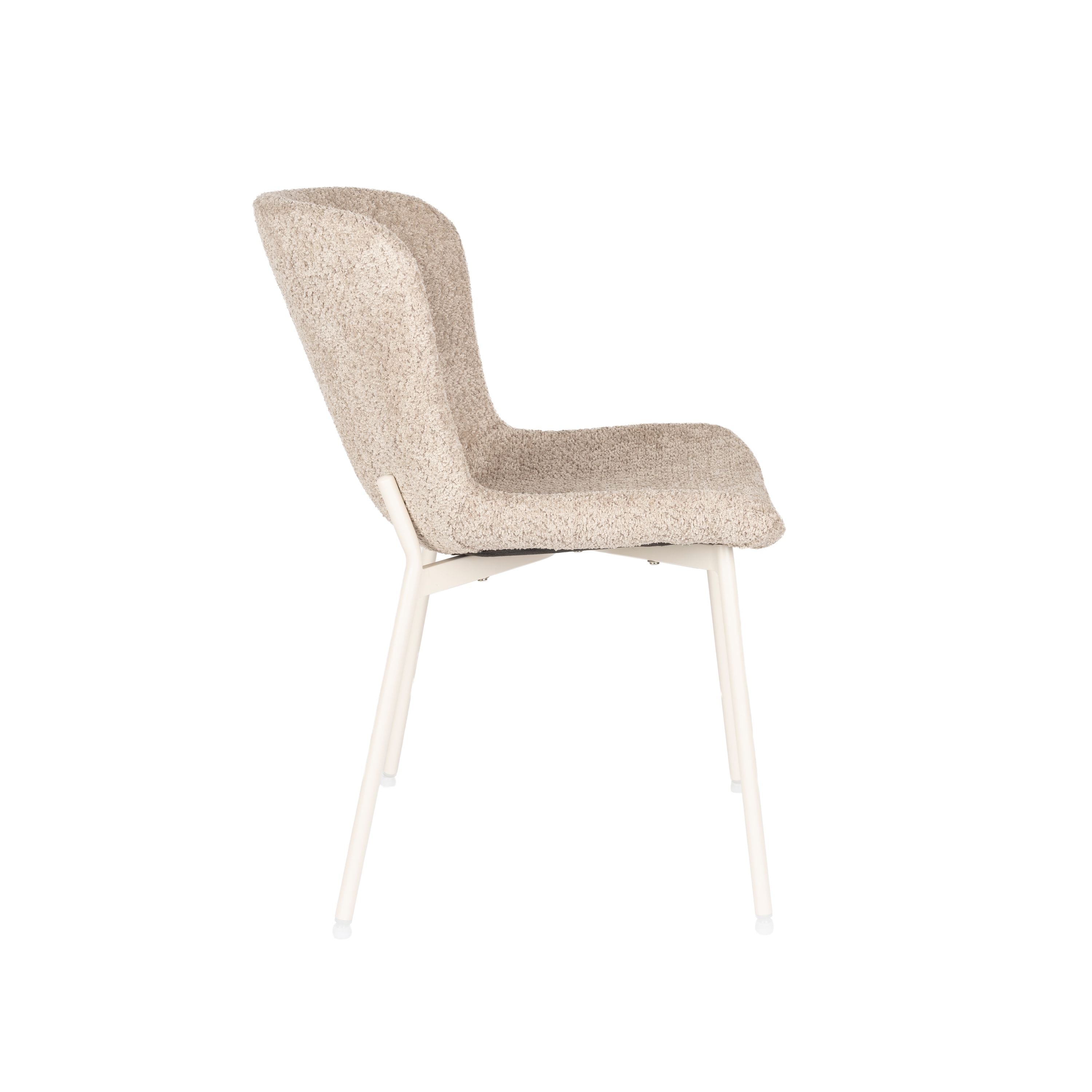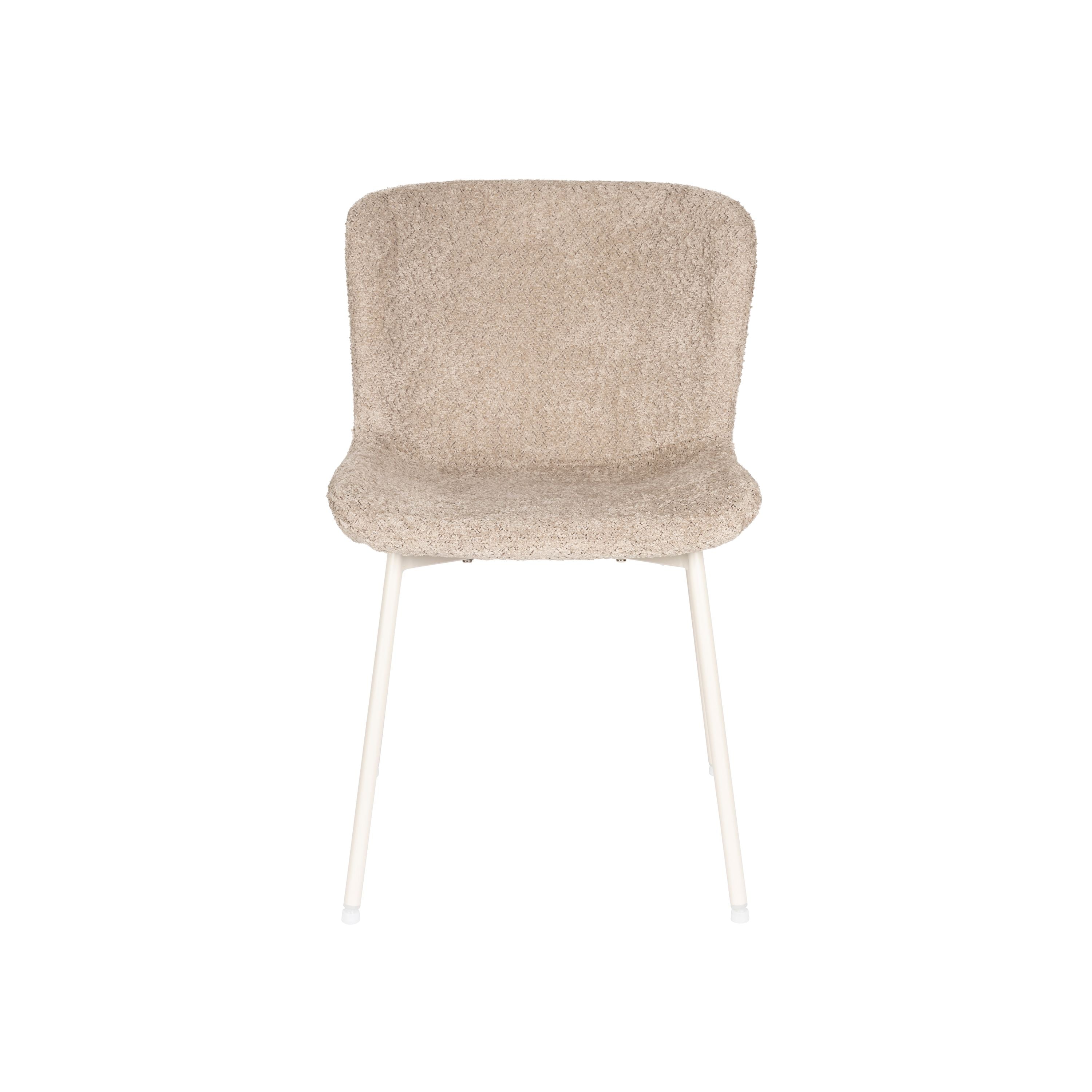 Als je gek bent op de rustige uitstraling van eenScandinavisch interieur of de Japandi woontrend, dan zit je goed met de Marioneetkamerstoel. De zitting van deze stoel is bekleed met stof die heerlijk zachtaanvoelt en een knusse teddy-uitstraling heeft. Het onderstel van metaal isafgewerkt in een matte poedercoating met dezelfde kleur. Dit geeft een mooiton-sur-ton effect en maakt de stoel makkelijk te combineren in iederinterieur.