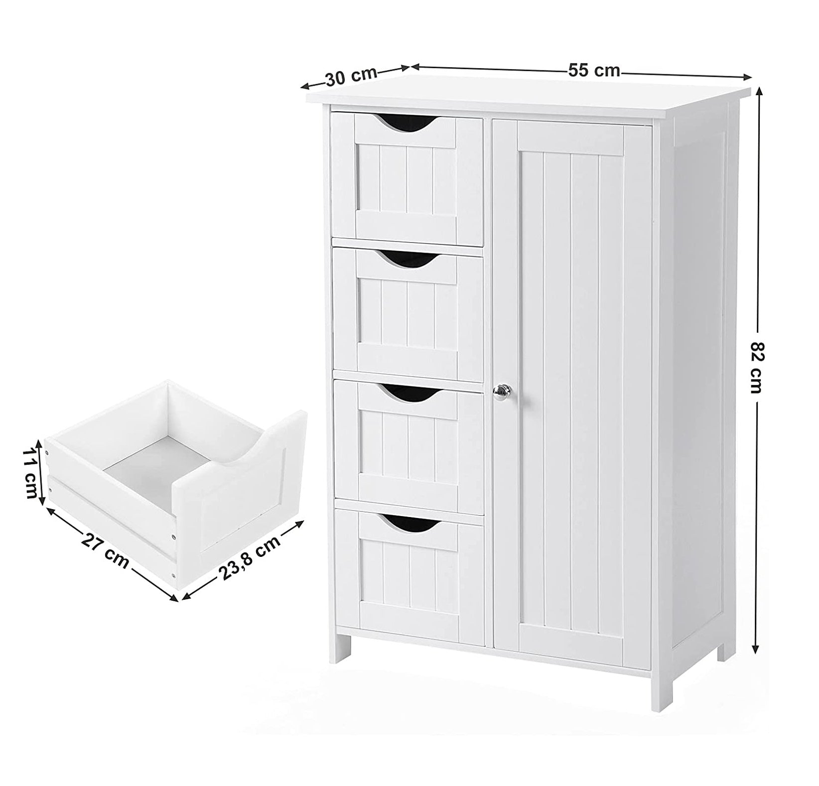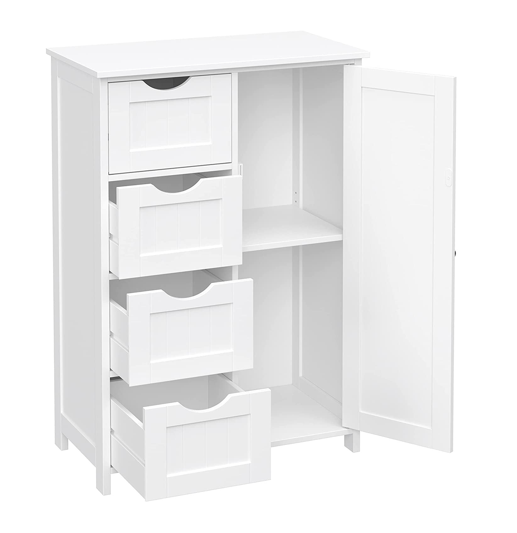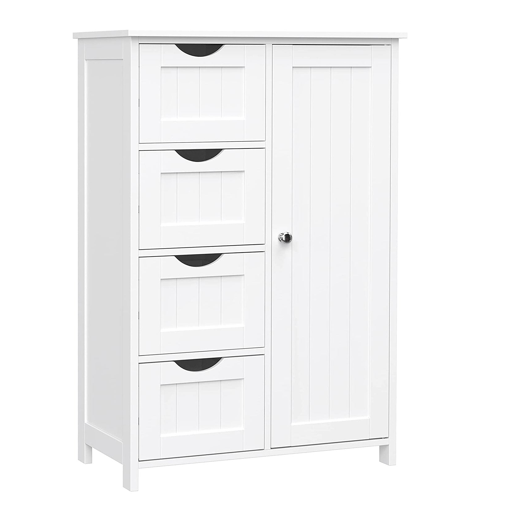 Deze houten witte kast van het merk Parya Home staat ideaal in uw badkamer, slaapkamer of overloop. Deze op een speciaal manier ontworpen kast heeft maar liefst 4 losse opbergkorven en een wat grotere deur. In deze kast kunt u veel spullen kwijt.