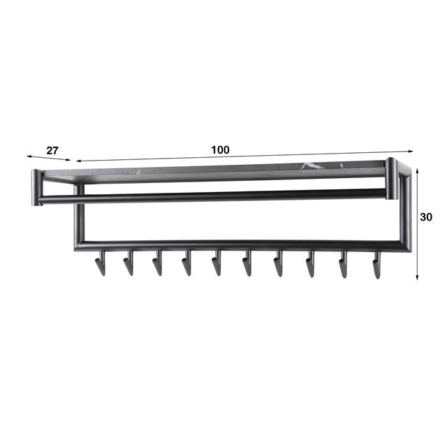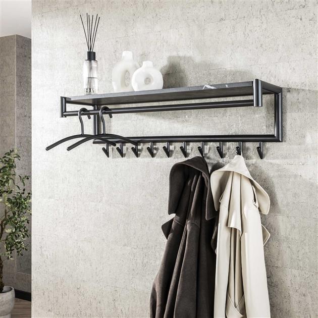 Hoyz Collection - Kapstok 10 Haaks Roede-hoedenplank - 3D Zwart Bruin