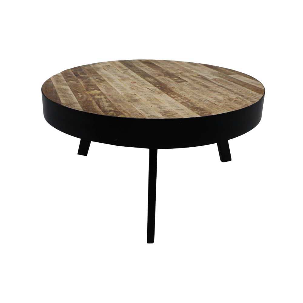 Bijzettafel Montreal - ø70X35 - Naturel/zwart - Mangohout/metaal
