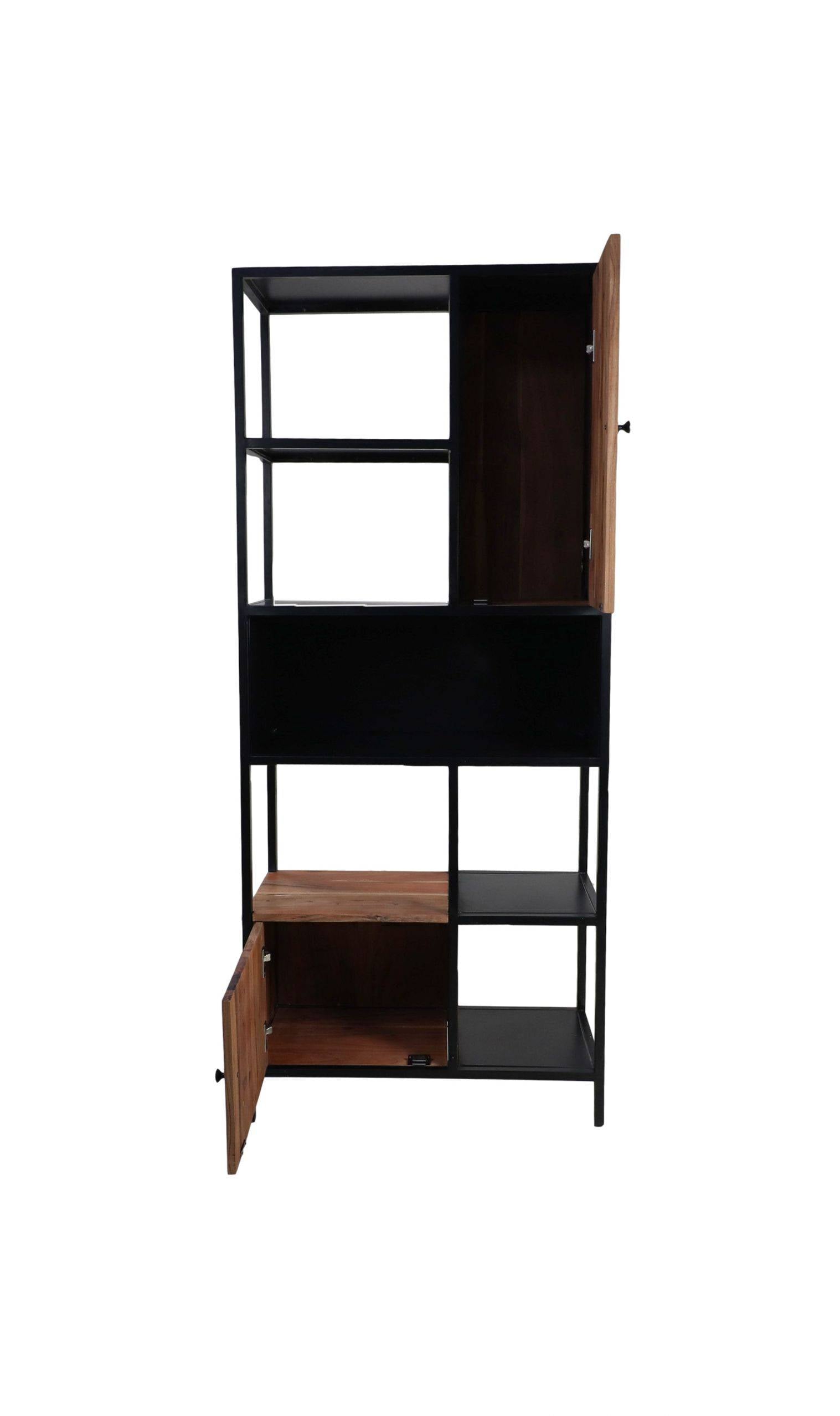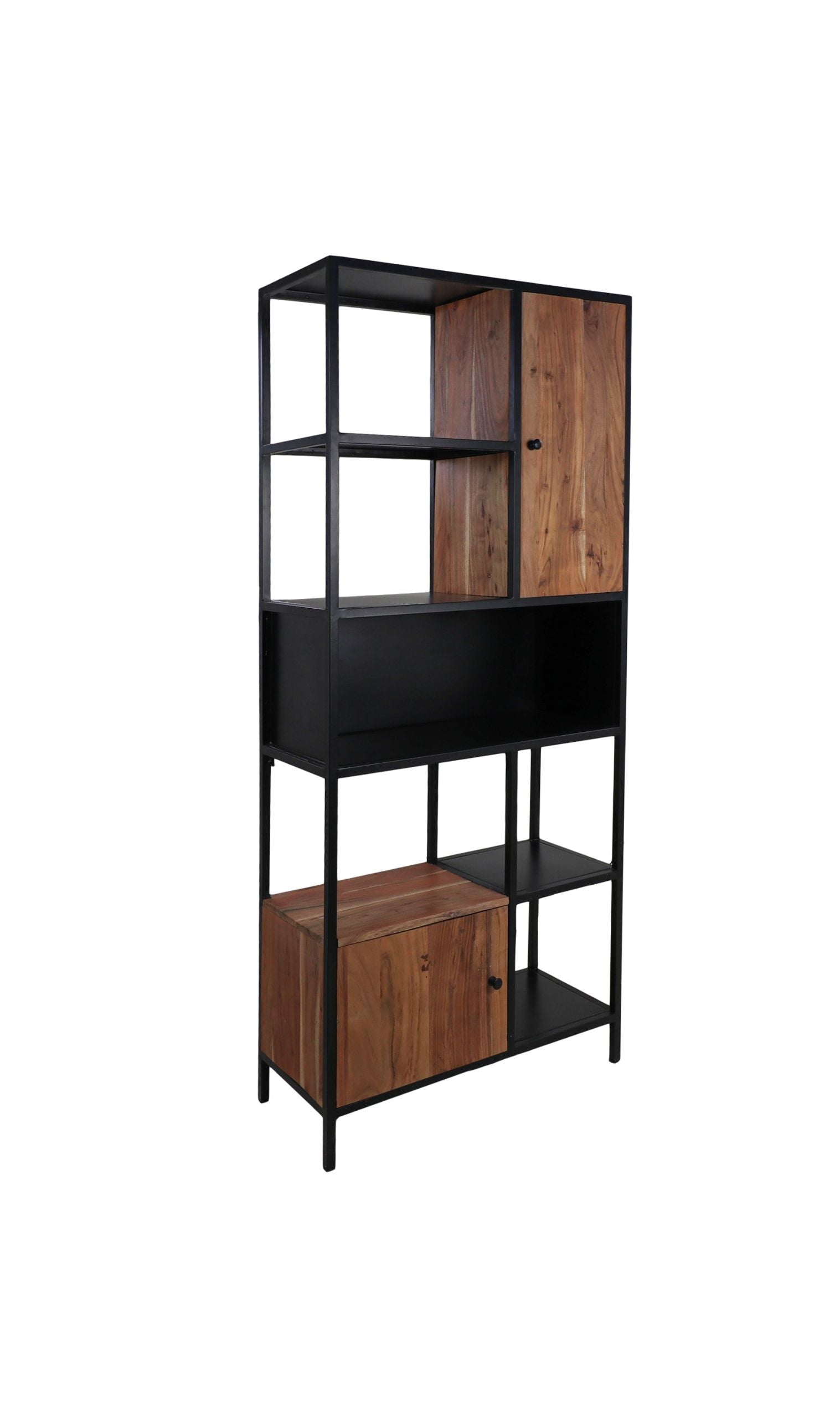 HSM Boekenkast - 80x35x185 - Zwart|naturel - Acaciahout|ijzer