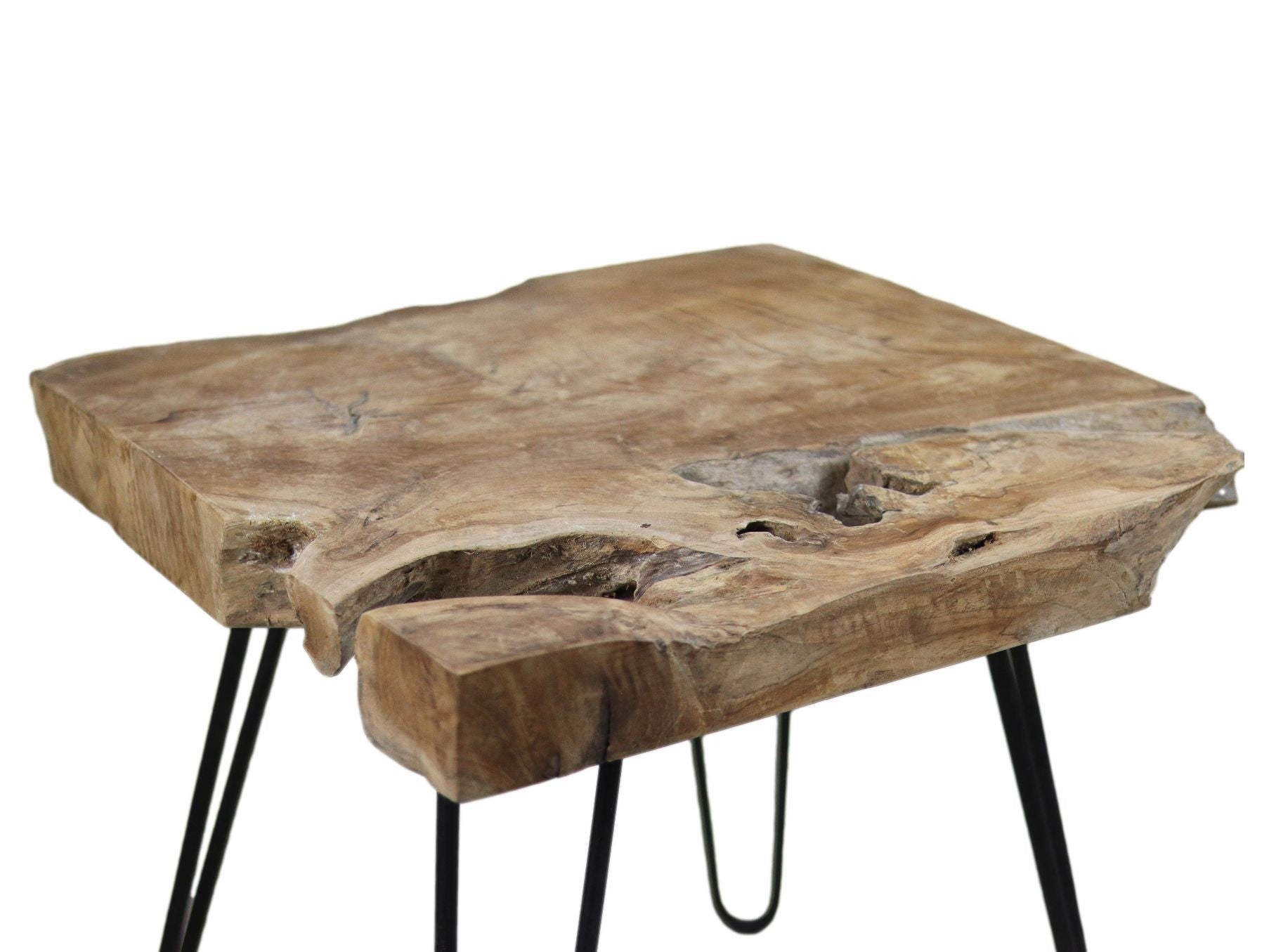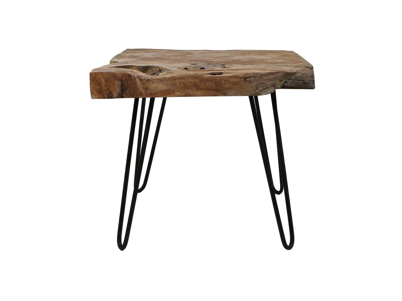 HSM Collection-Bijzettafel Hairpin Poot-ø50x50-Bruin|Zwart-Teak|Metaal