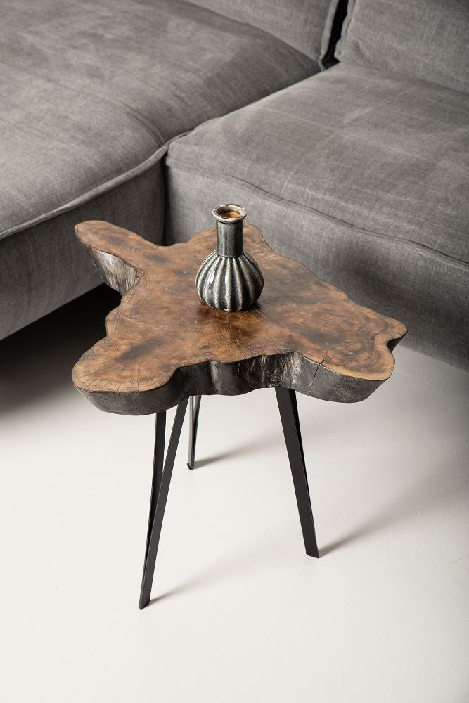 HSM Collection-Bijzettafel-ø55-66x47-Bruin|Zwart-Teak|Metaal