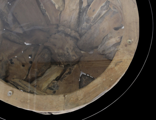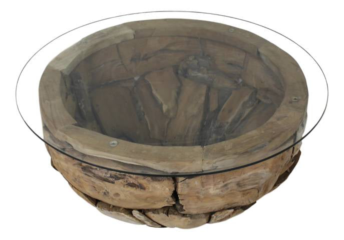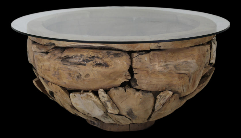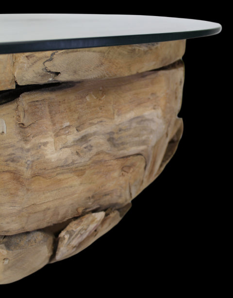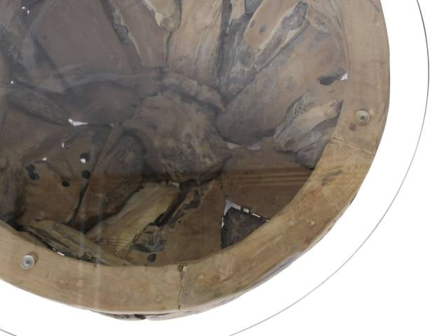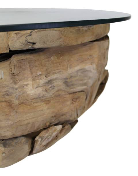 HSM Collection-Ronde Salontafel Root-ø80x45 (glas ø90)-Bruin-Teak|Glas