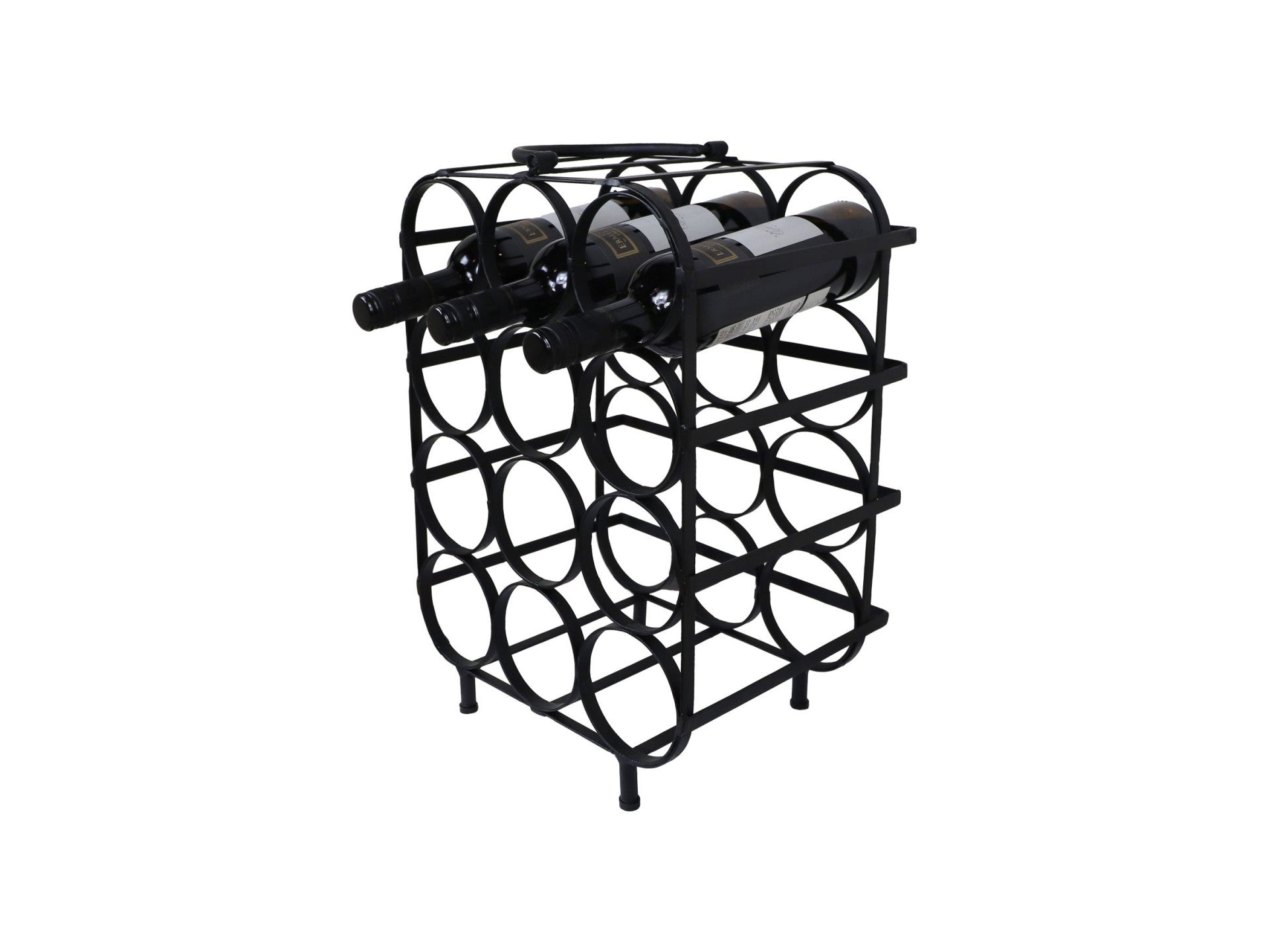 HSM Collection-Staand Wijnrek 12 Flessen-35x25x50-Zwart-Metaal