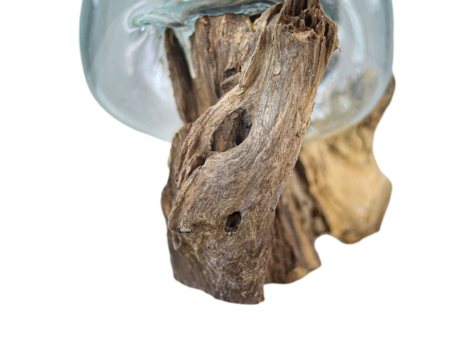HSM Collection Vaas op wortelhout- ø25x30 - Naturel - Teakhout|glas