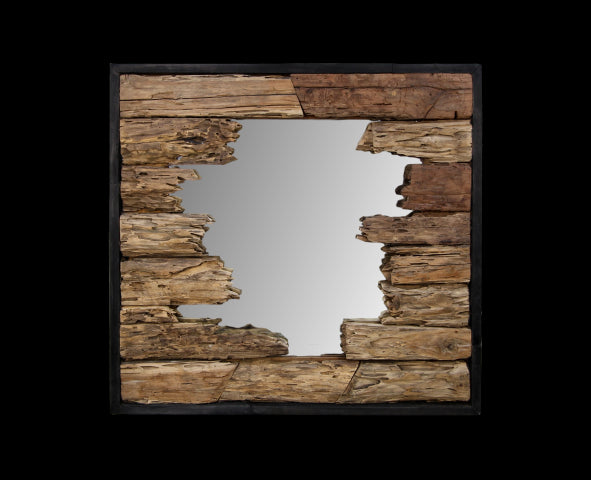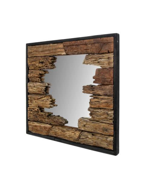 HSM Collection-Vierkante Spiegel-80x5x80-Bruin|Zwart-Teak