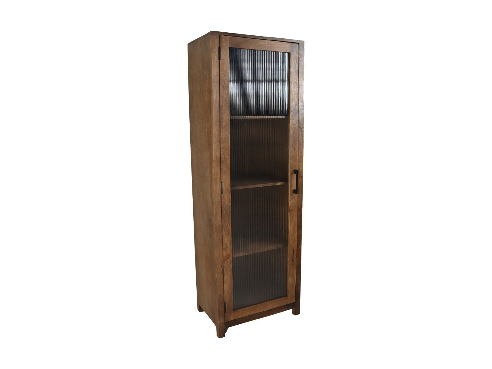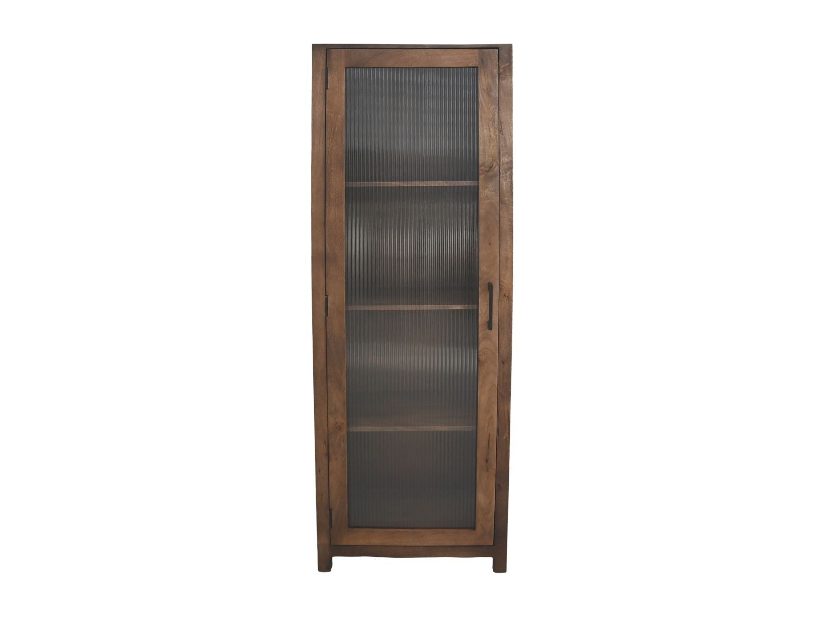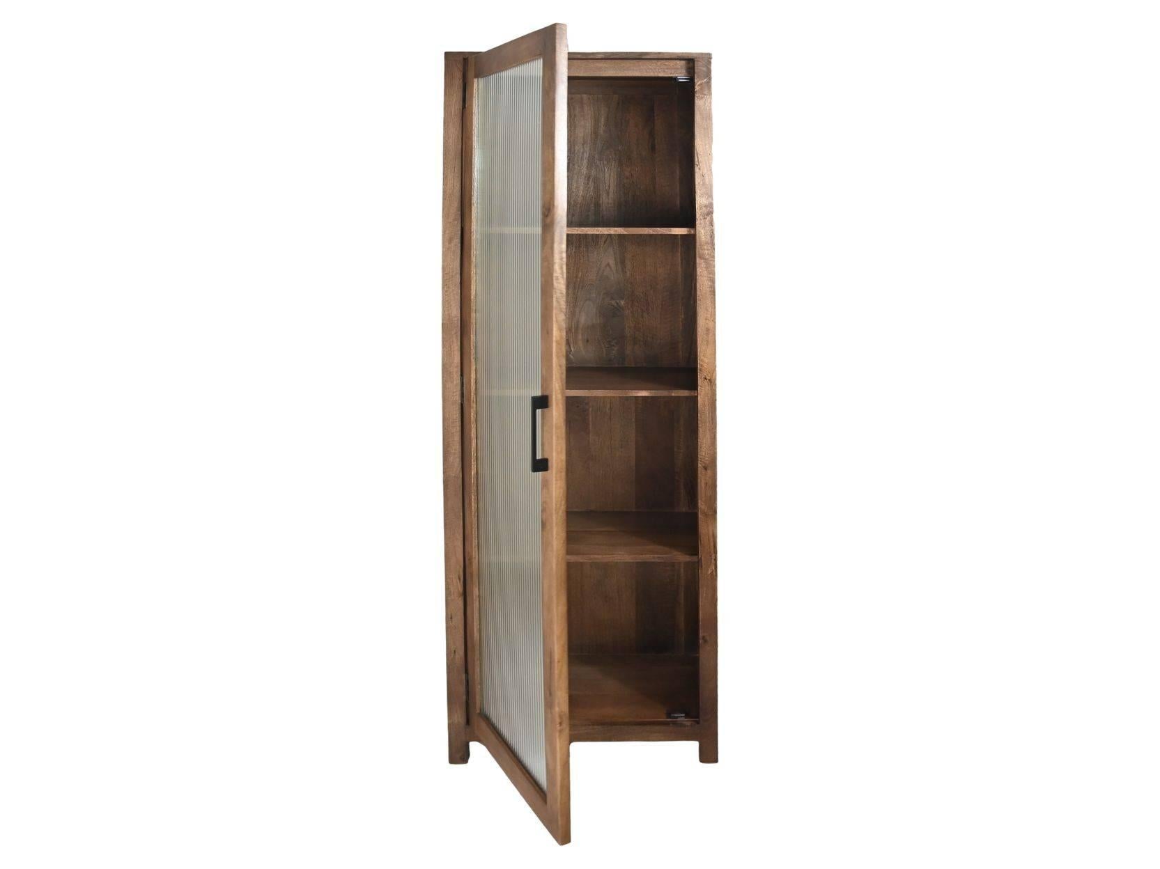 HSM Collection-Vitrinekast 1 Deur Links-60x40x180-Naturel-Mango|Glas