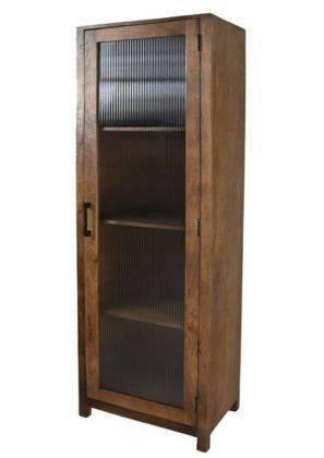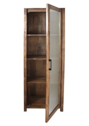 HSM Collection-Vitrinekast 1 Deur Rechts-60x40x180-Naturel-Mango|Glas