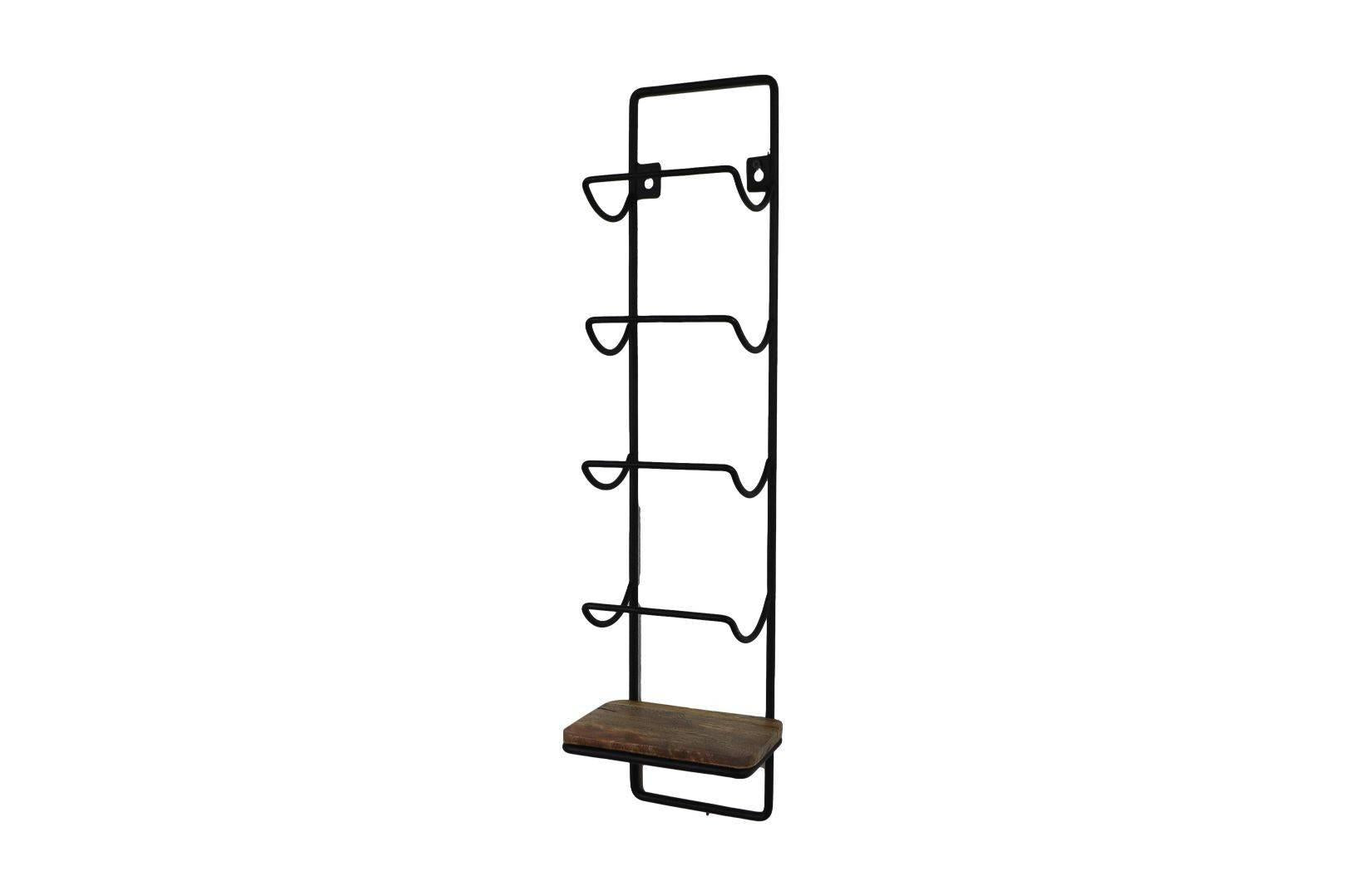 Dit Wijnrek voor aan de wand biedt ruimte voor 4 flessen en heeft een stoere uitstraling. Door zijn stalen frame heb je een prachtig industrieel wijnrek in huis en een mooie opbergplek voor je wijnen! Het plankje onder het wijnrek is van mangohout.