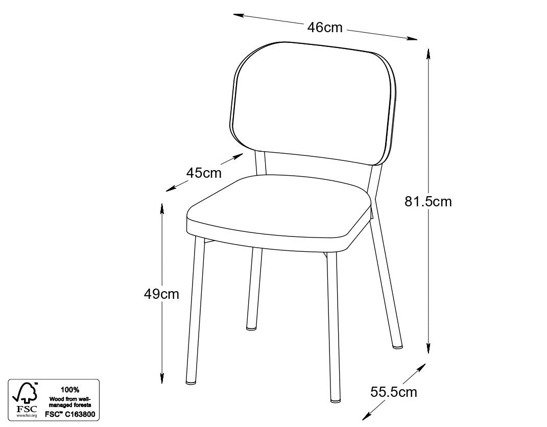 De hoogte van de zitting, gemeten vanaf de vloer. De ideale zithoogte bevindt zich tussen de 40 en 46 cm. Je zit het lekkerst met een ruimte van ongeveer 20 cm, tussen de stoelzitting en de onderkant van het tafelblad.