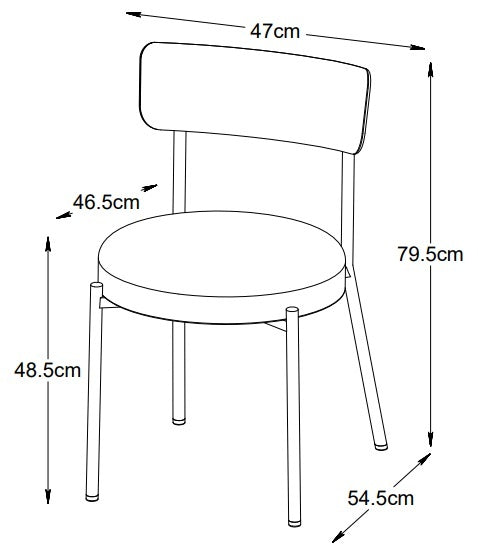 - De zithoogte is 48.5 cm.