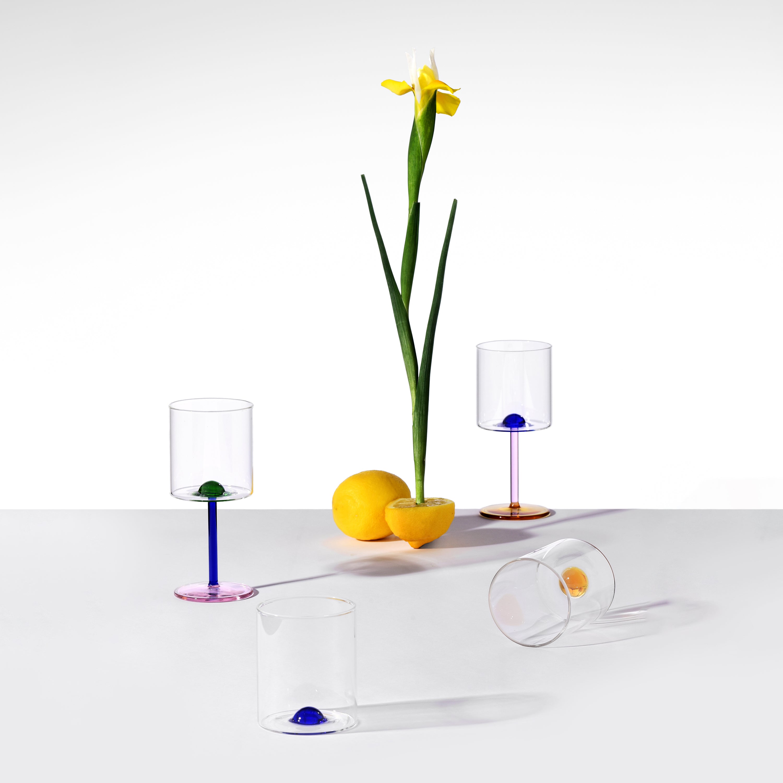 - Gekleurde steel en subtiel bolletje in de kelk