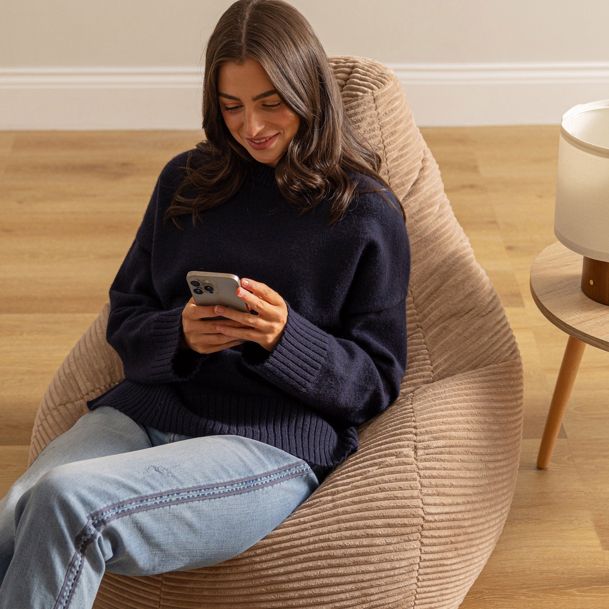 - Ontspannende zitzak met hoge rugleuning, gemaakt van het zachtste, OEKO-TEX-gecertificeerde ribfluweel