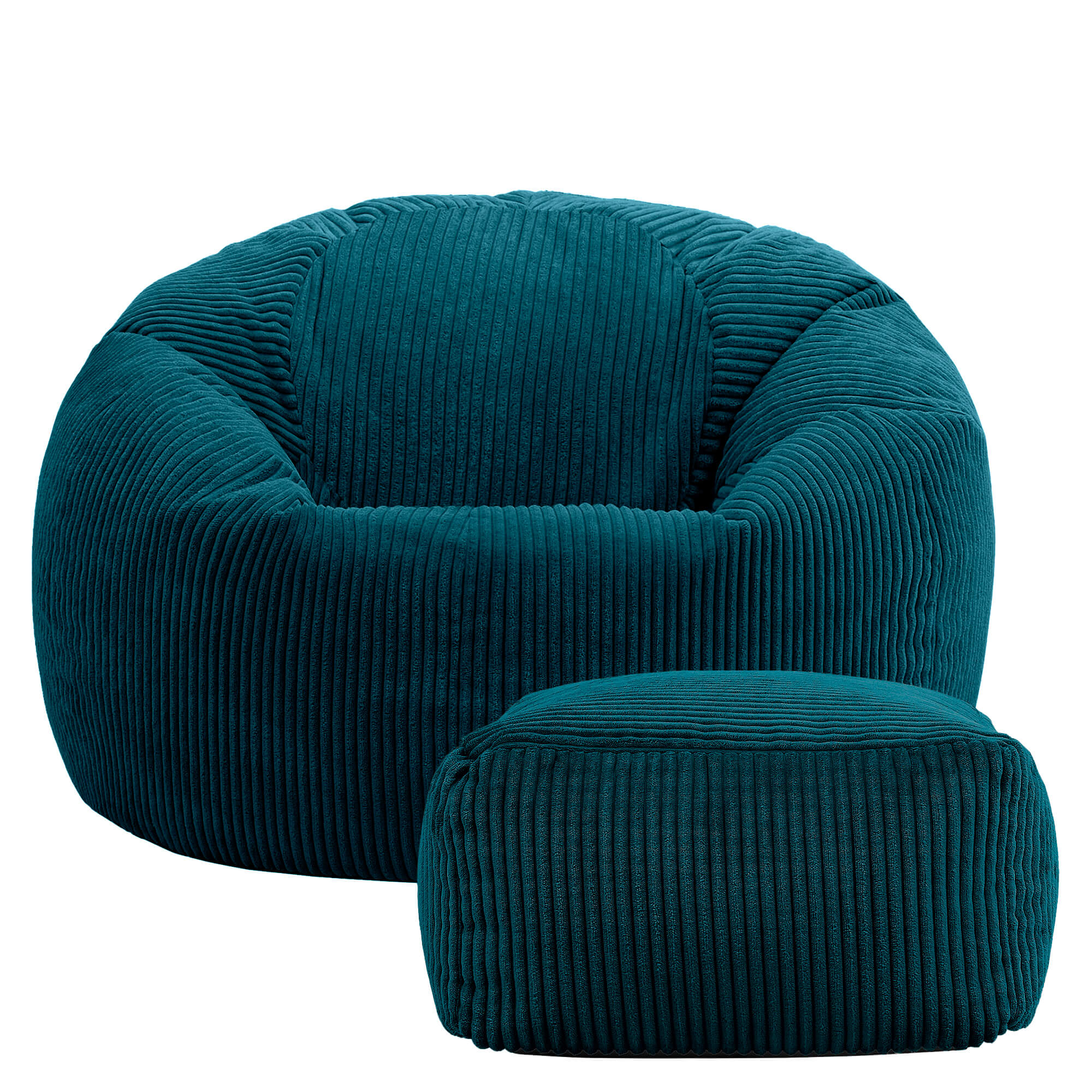 icon Kingston Zitzak met Poef - Ribfluweel - Blauwgroen