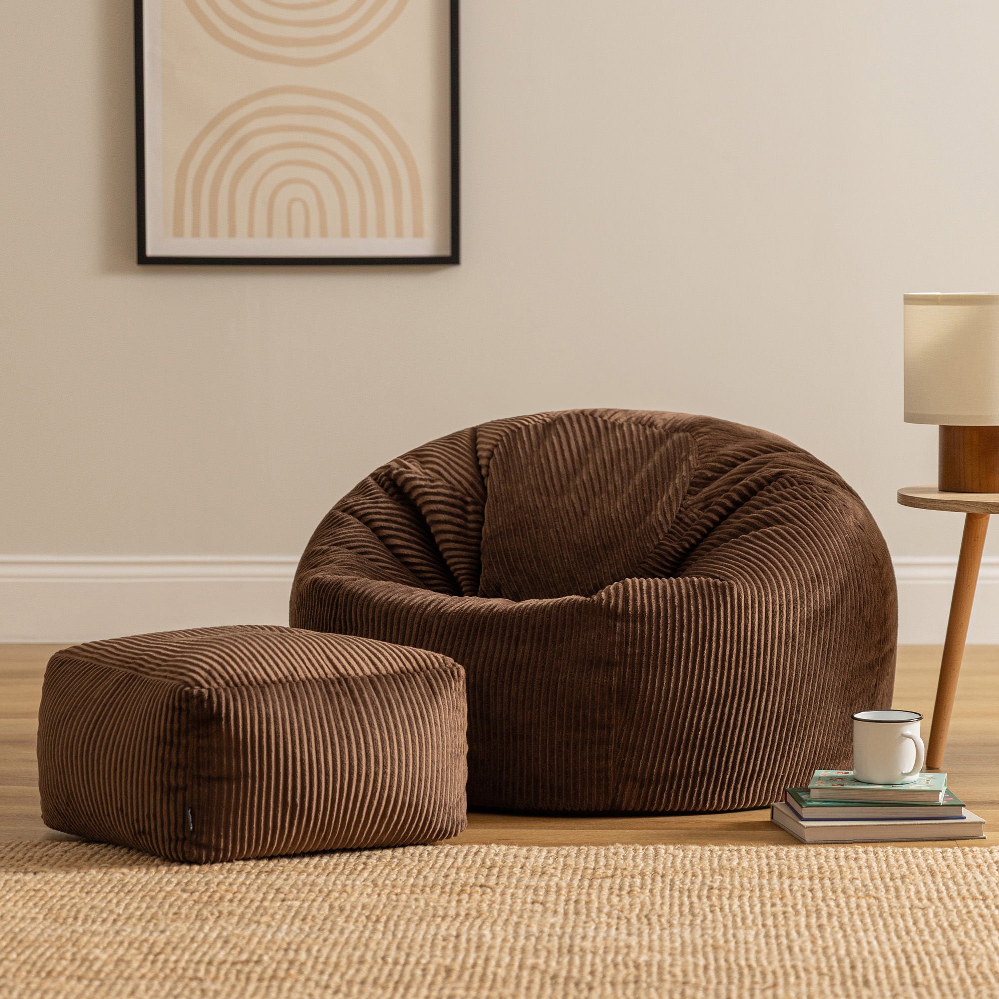 icon Kingston Zitzak met Poef - Ribfluweel - Chocolade