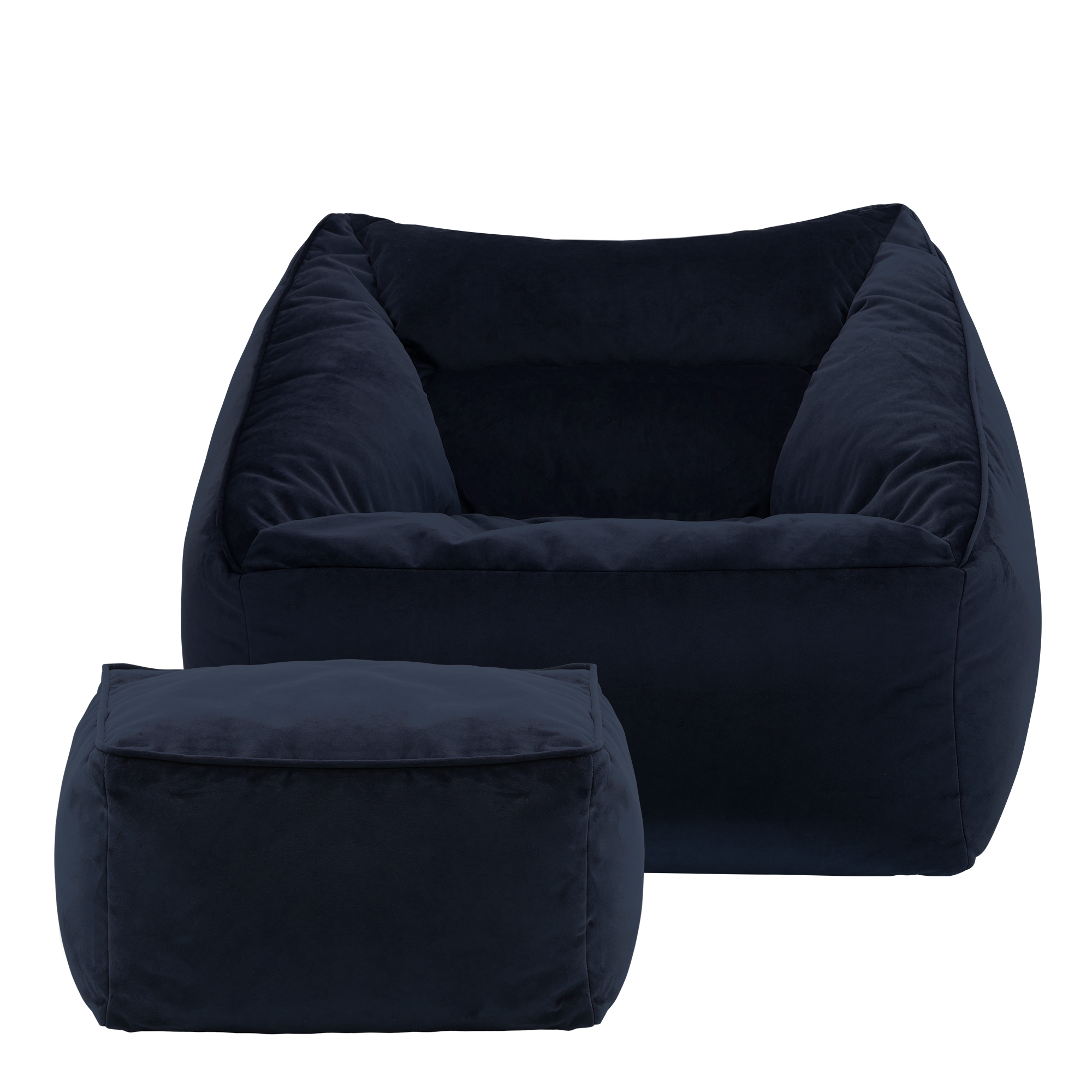 - Comfortabele XL-zitzak met bijpassende poef, gemaakt van het zachtste fluweel