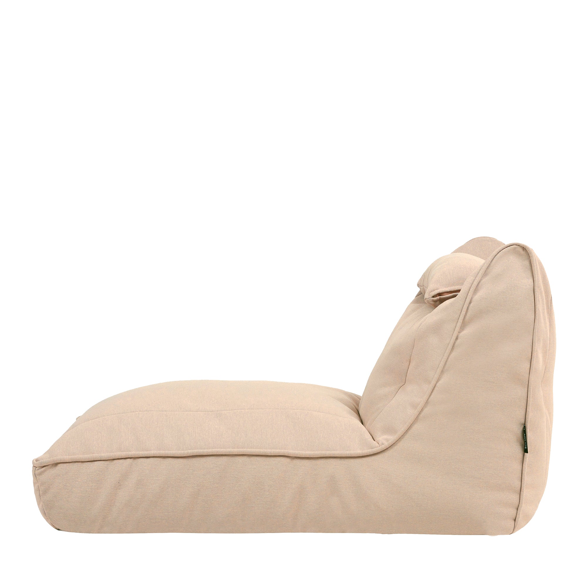 - Comfortabele lounger-zitzak met geïntegreerde hoofdsteun, gemaakt van duurzame Olefin-stof – waterbestendig en geschikt voor buiten