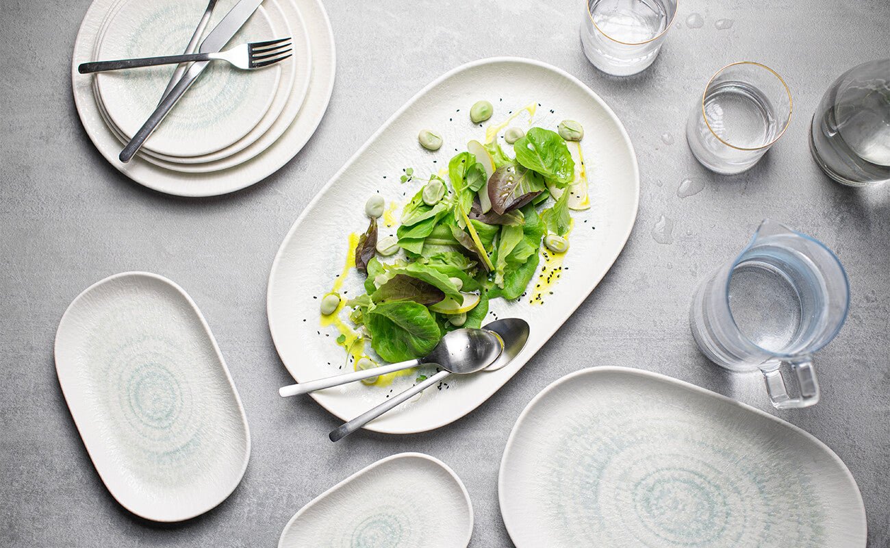 Geïnspireerd door de natuurlijke schoonheid van kristallen uit de natuur, presenteert deze collectie delicate mintgroene en watergroene tinten. Elk stuk is vervaardigd met de focus op eenvoud en elegantie en is voorzien van een unieke onderglazuurtechniek die het kristaleffect benadrukt en een subtiele, ingetogen look creëert.