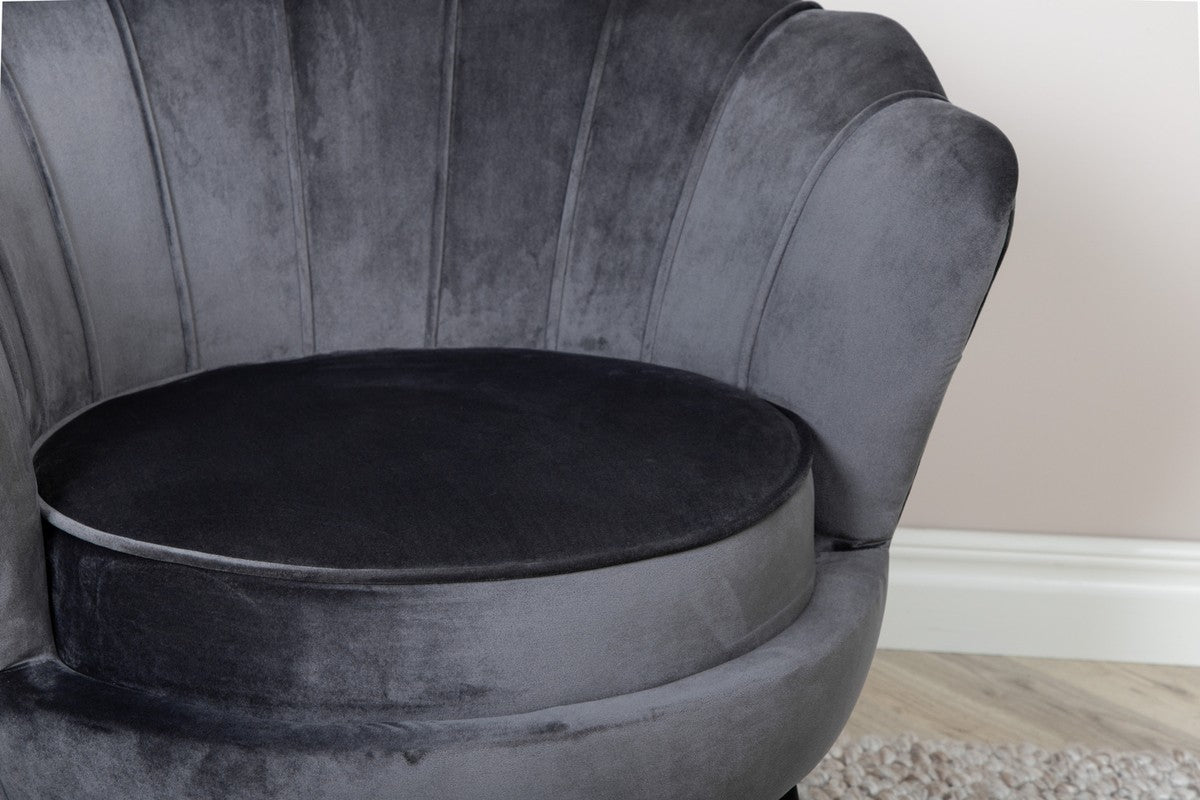 Ilora steelt gegarandeerd de show. Met haar schelpvormige rugleuning en luxueuze velours bekleding straalt deze fauteuil pure elegantie uit. Een knipoog naar art deco, maar helemaal van nu.